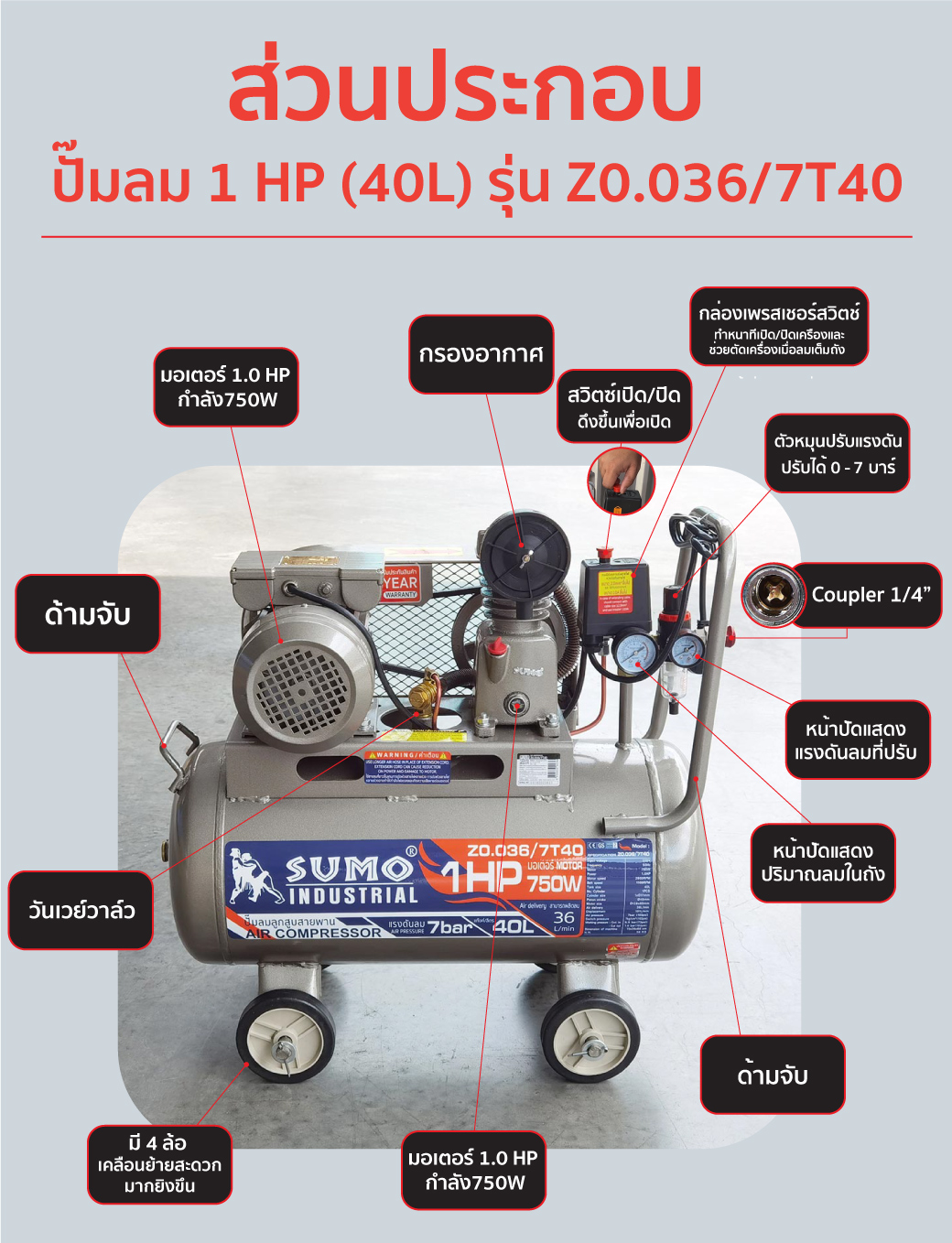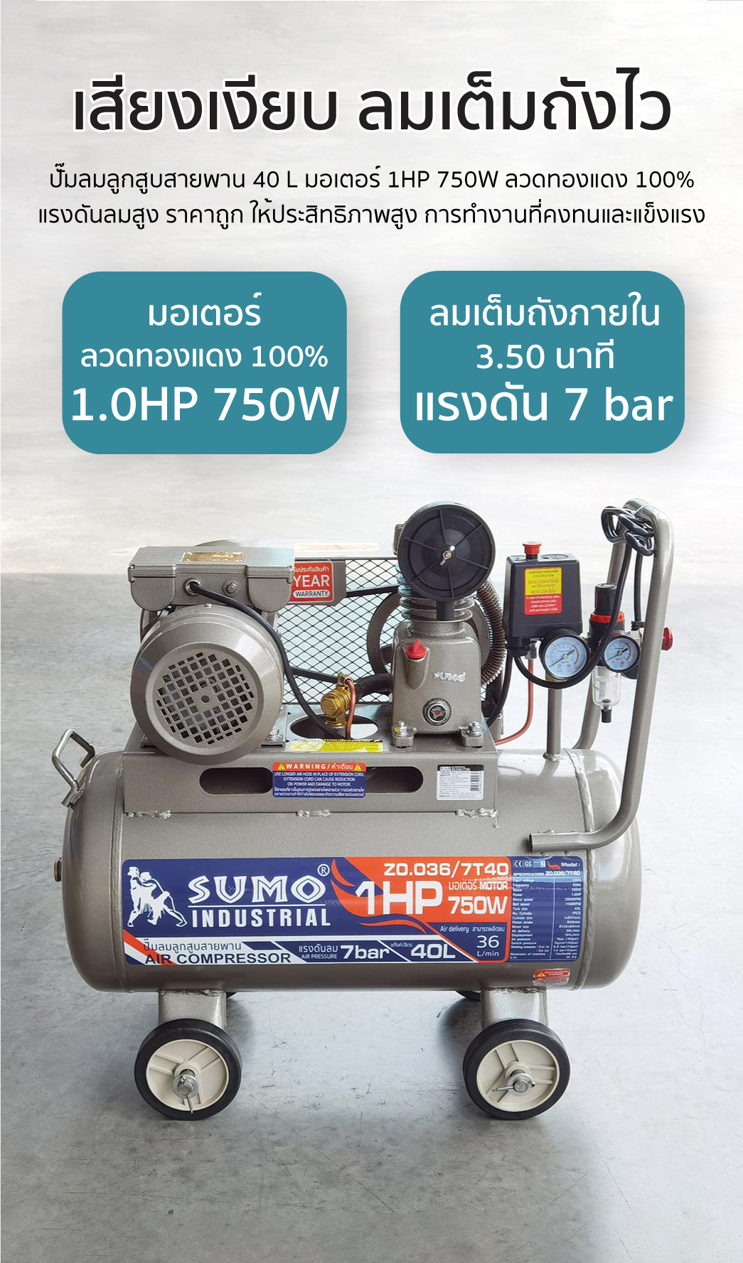 ปั๊มลม 1 HP (40L) รุ่น Z0.036/7T40 SUMO
