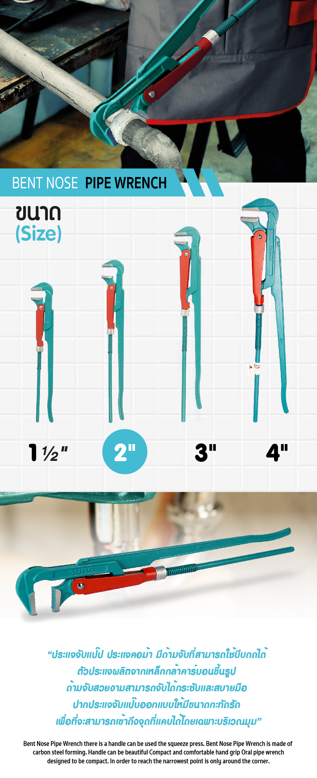 Bent Nose Pipe Wrench 2 ” SUMO