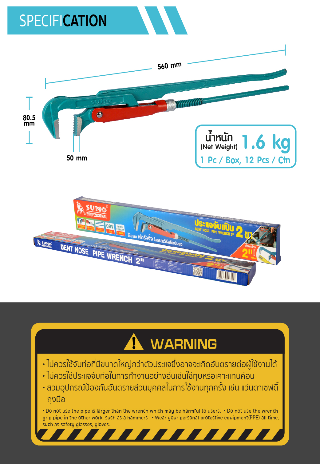 ประแจจับแป๊ป 2 ” 2 ขา SUMO