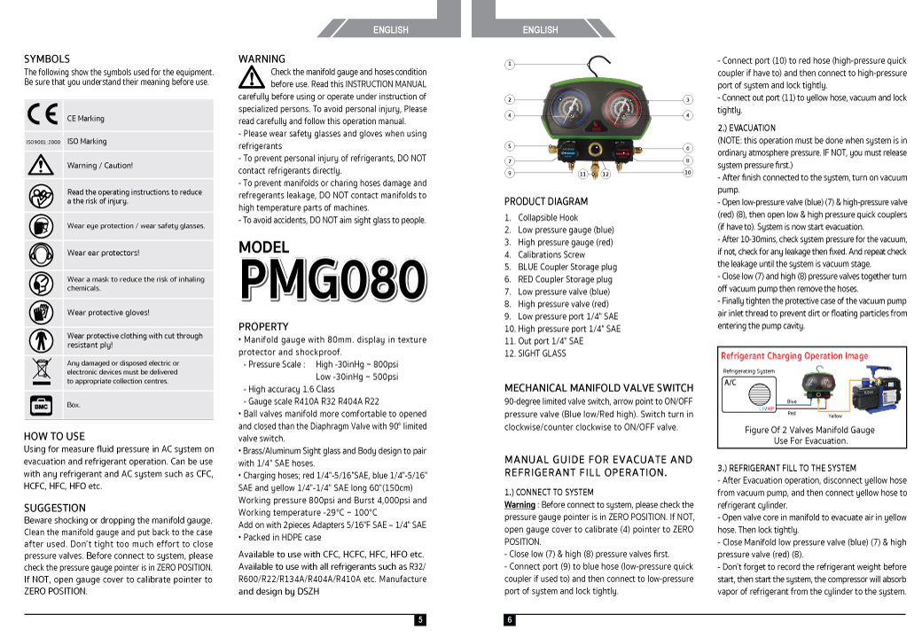 It is used to measure the pressure of liquids and gases within the refrigeration system. in the vacuum process and add refrigerant.