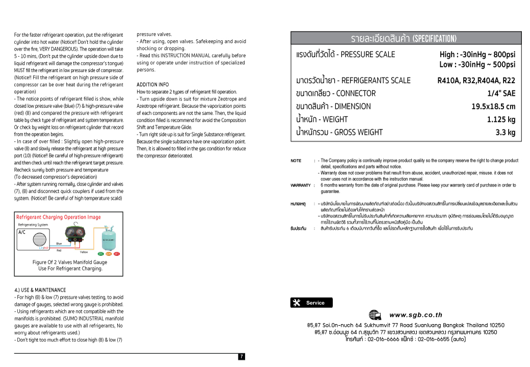 มาตรวัดน้ำยา (Refrigerants scale) | R410A, R32,R404A, R22 |
