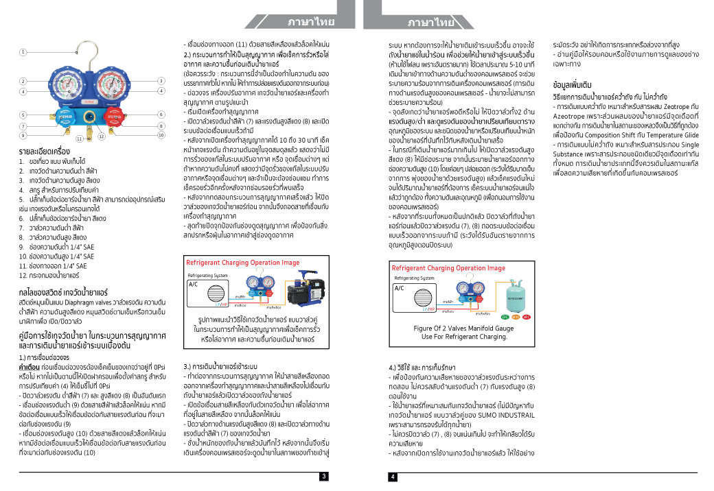 ใช้วัดแรงดันของเหลว และก๊าซ ภายในระบบทำความเย็น ในกระบวนการสุญญากาศ และ เติมน้ำยาแอร์