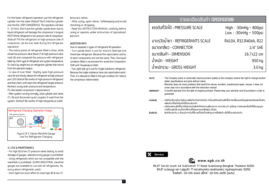 เกจวัดน้ำยาแอร์ รุ่น SMG168 SUMO