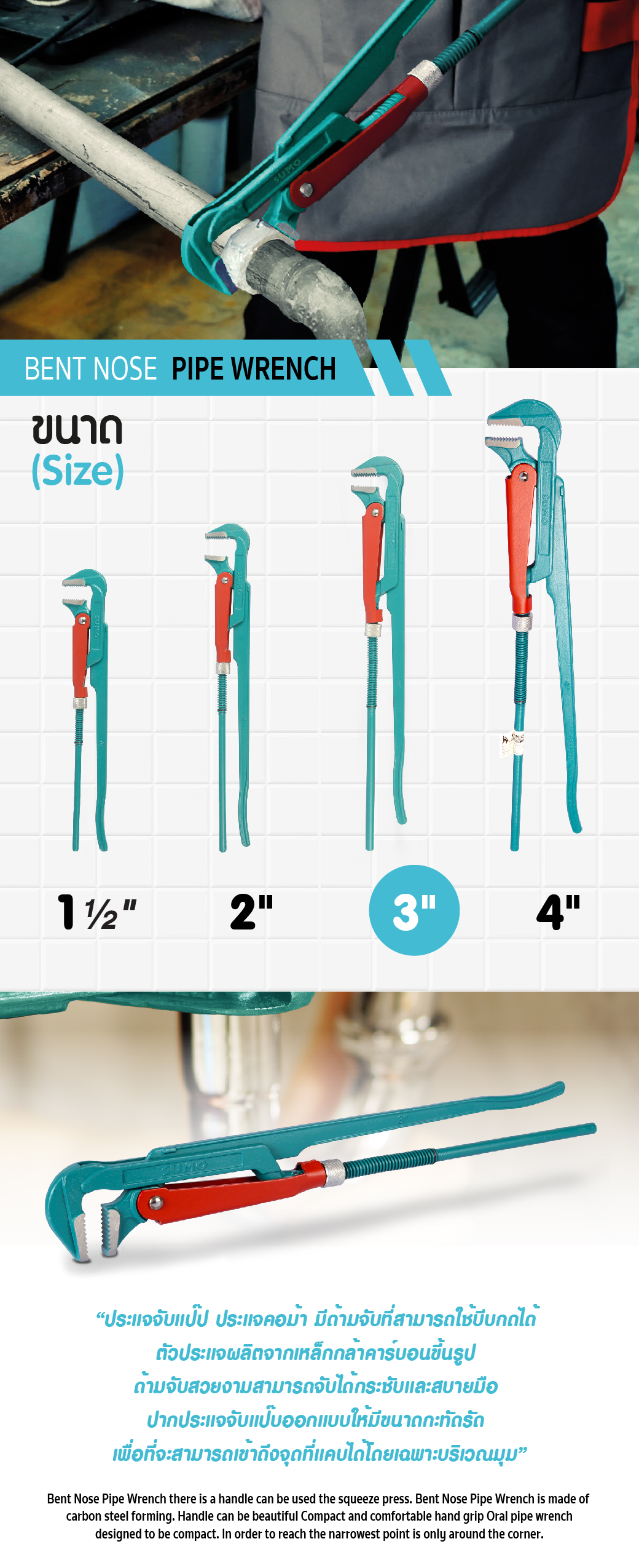 Bent Nose Pipe Wrench 3 ” SUMO