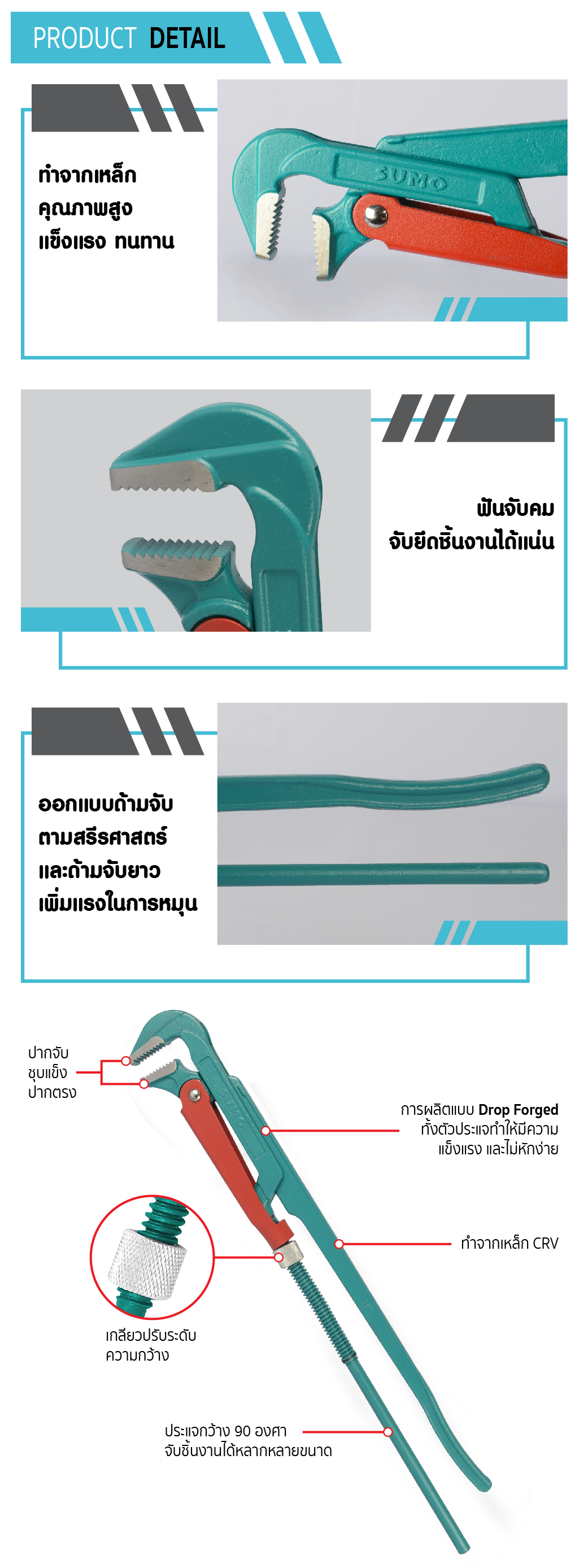 ประแจกว้าง 90 องศา จับชิ้นงานได้หลากหลายขนาด ด้ามจับกระชับมือ