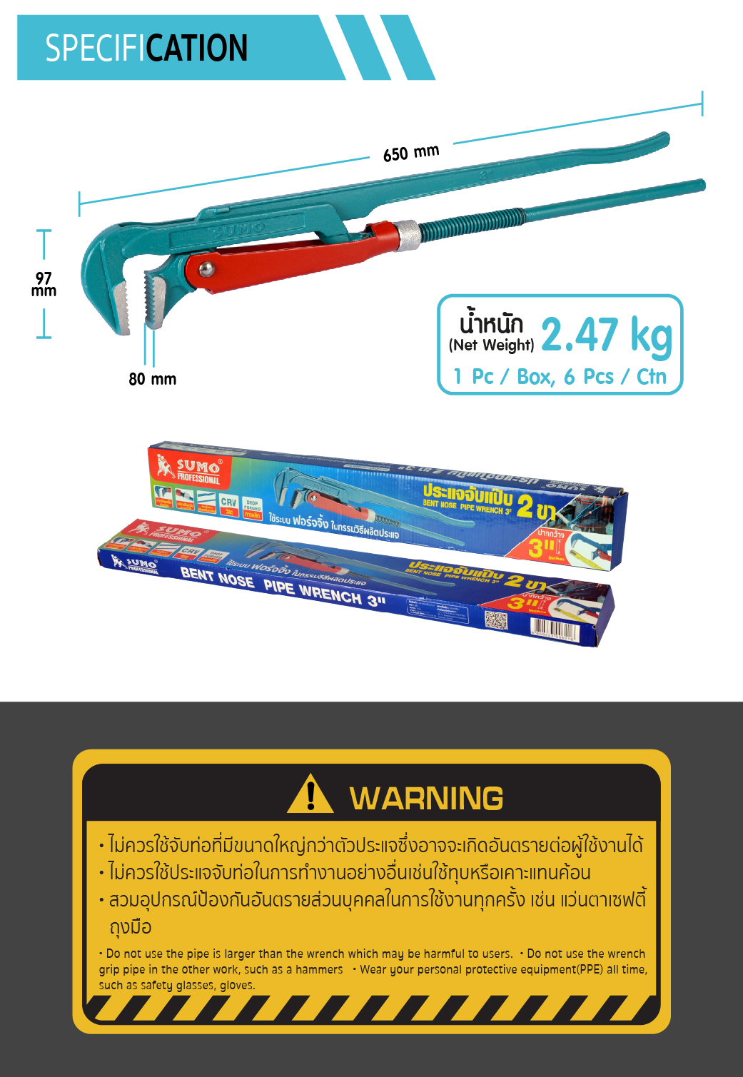 ประแจจับแป๊ป 3 ” 2 ขา SUMO