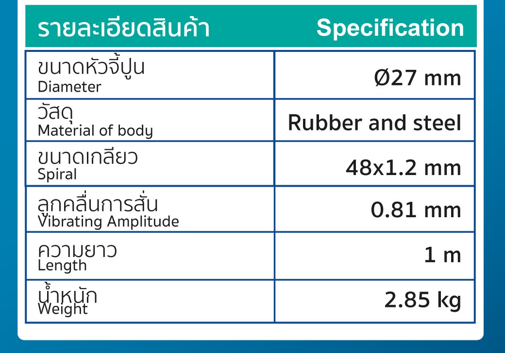 - ใช้ประกับเข้ากับเครื่องจี้ปูน ขนาดเกลียว 48x1.2 มม.