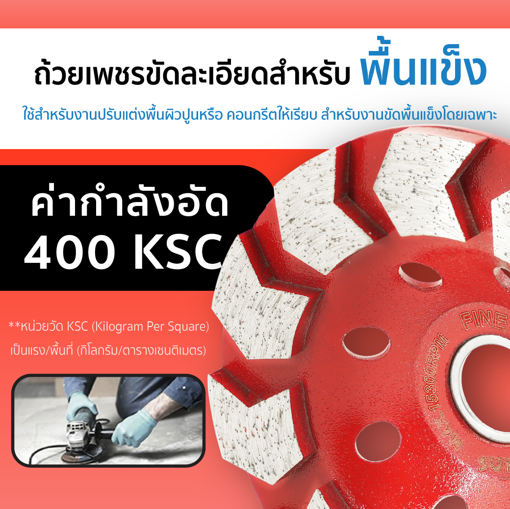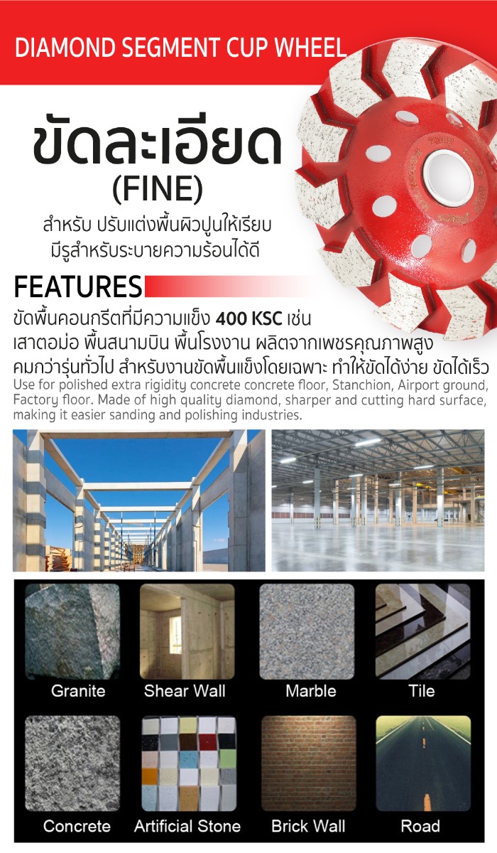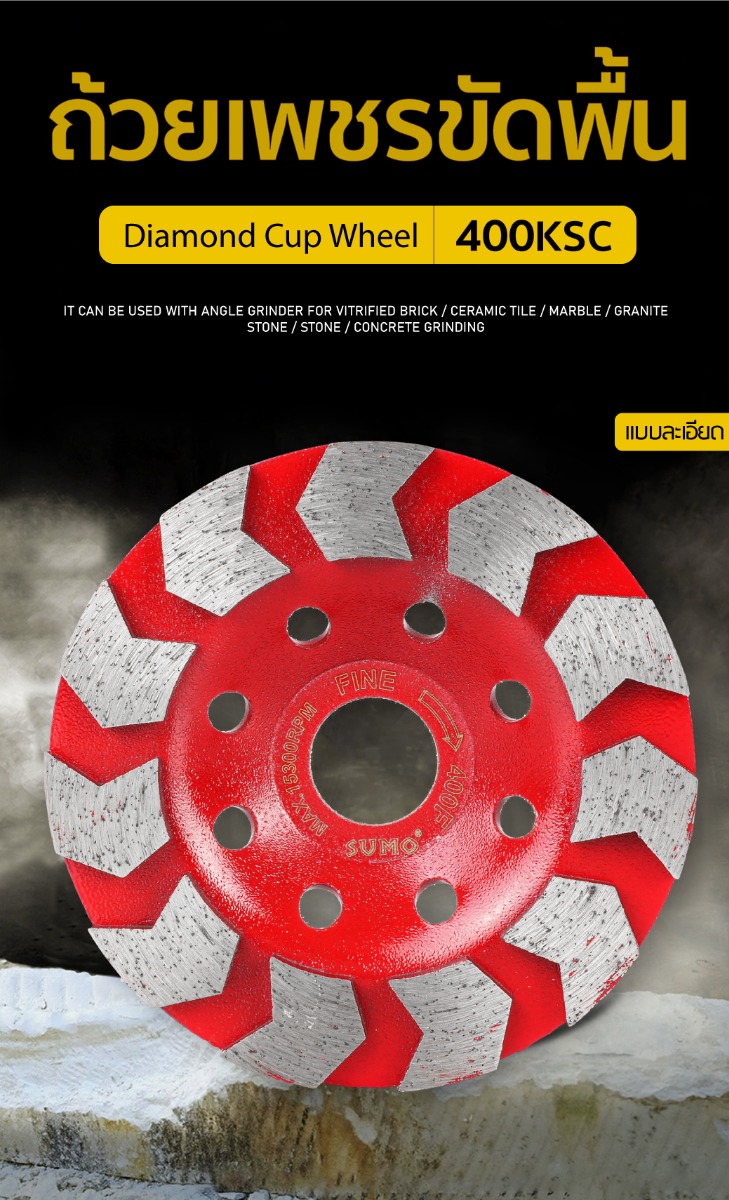 - ผลิตจากเพชรคุณภาพสูง คมกว่าทั่วไป สำหรับงานขัดพื้นแข็งโดยเฉพาะทำให้ขัดได้ง่าย ขัดได้เร็ว