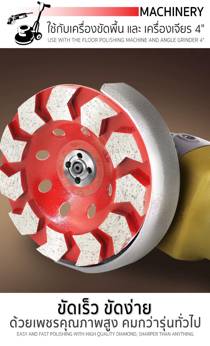 - ใช้กับเครื่องขัดพื้นและเครื่องเจียร 4"