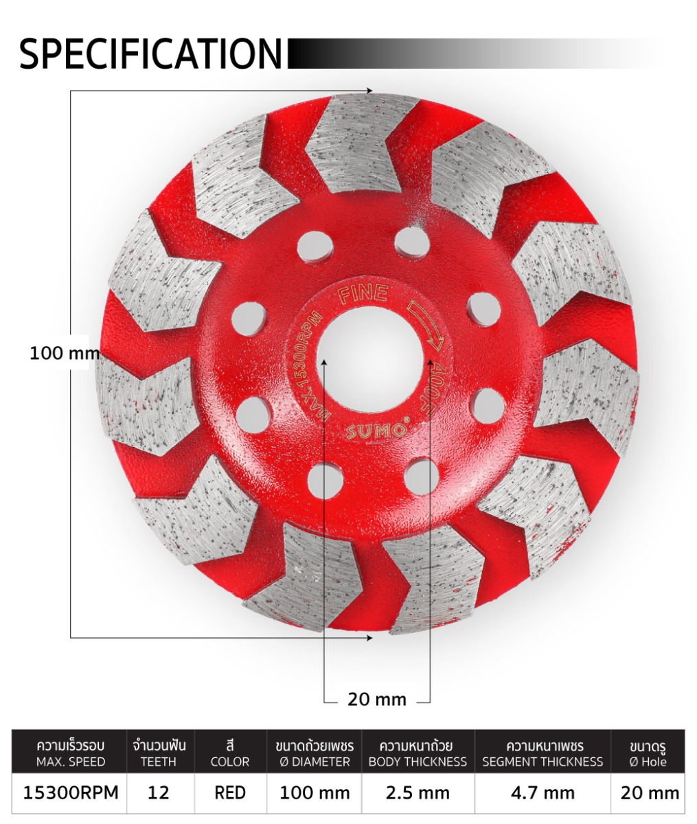 | ขนาดถ้วยเพชร (DIAMETER) | 100mm |