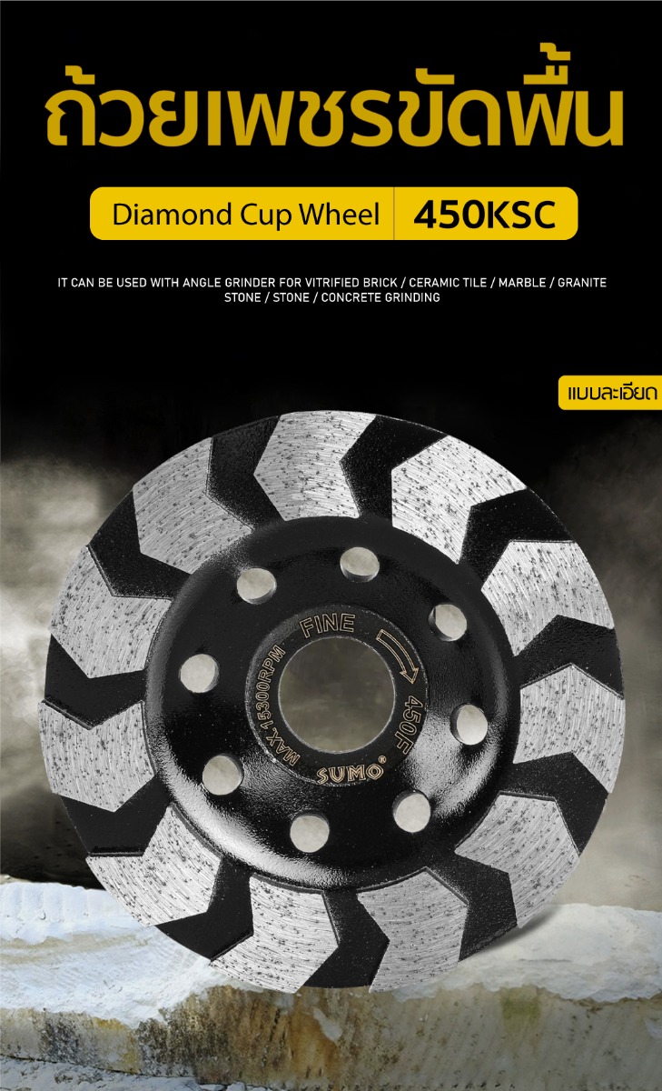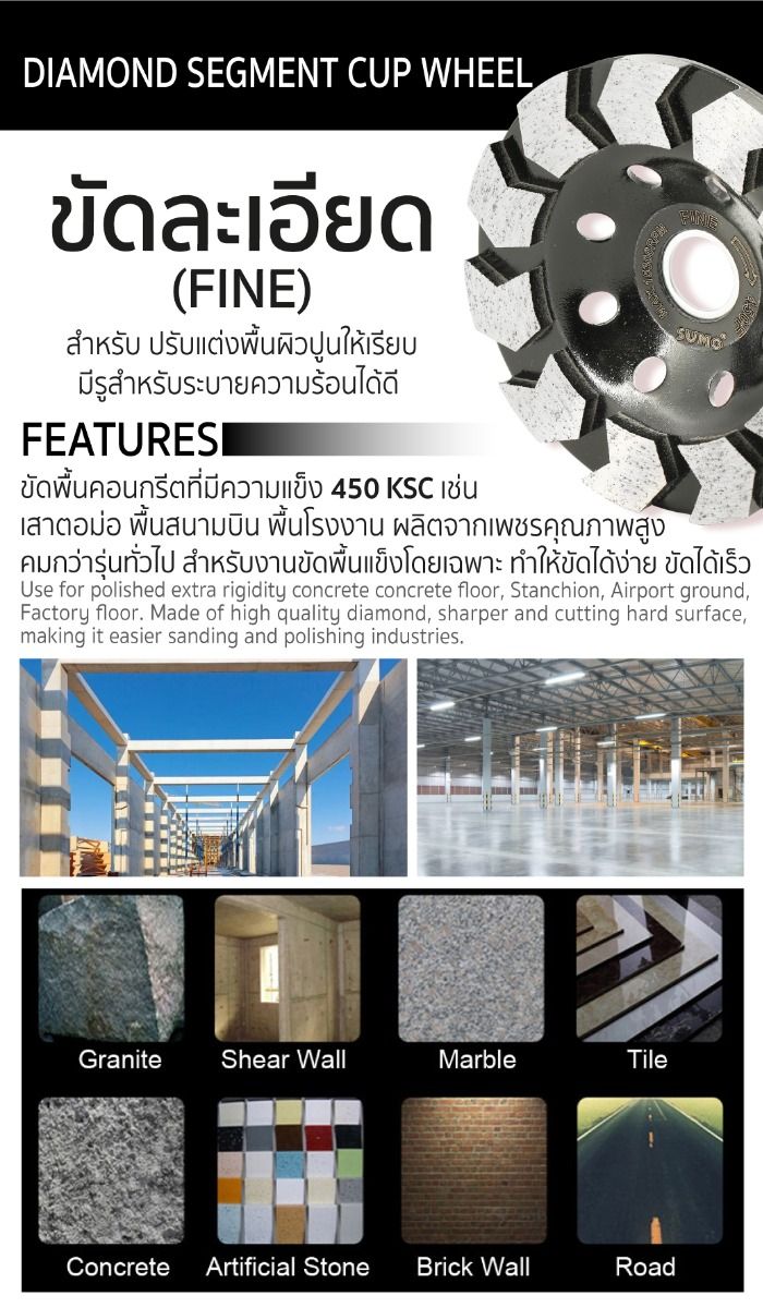- ผลิตจากเพชรคุณภาพสูง คมกว่าทั่วไป สำหรับงานขัดพื้นแข็งโดยเฉพาะทำให้ขัดได้ง่าย ขัดได้เร็ว