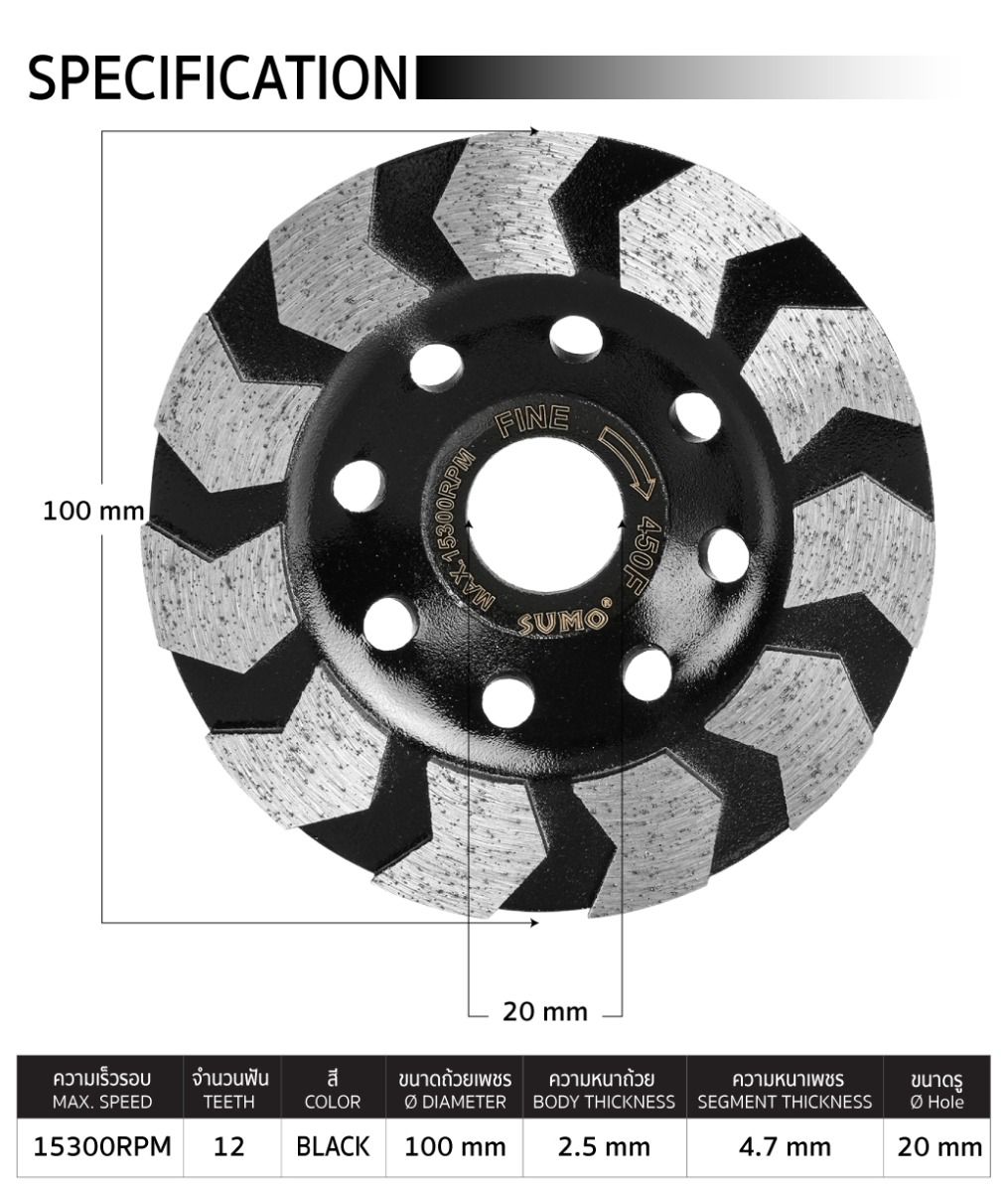 | ขนาดถ้วยเพชร (DIAMETER) | 100mm |