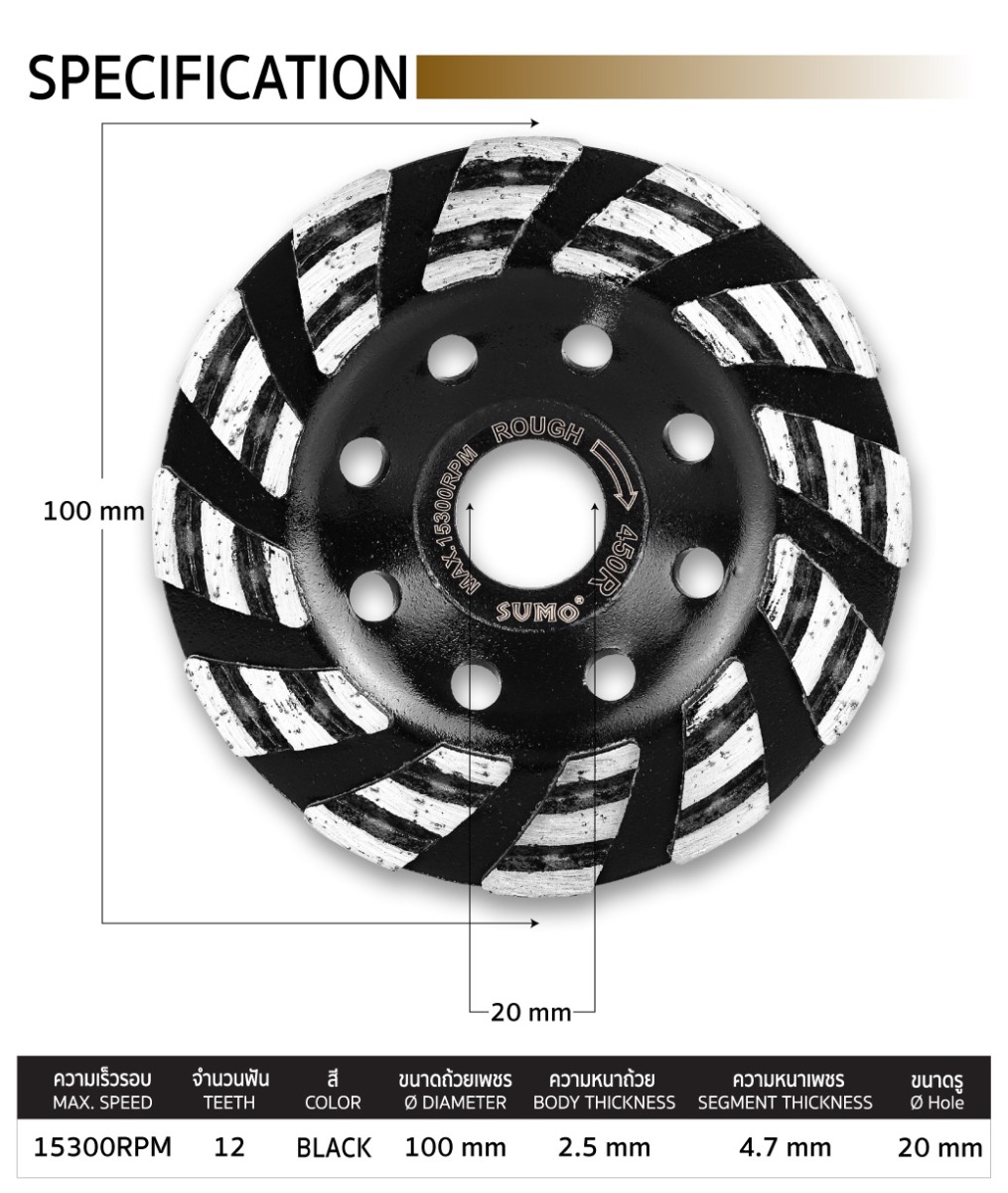 | ขนาดถ้วยเพชร (DIAMETER) | 100mm |