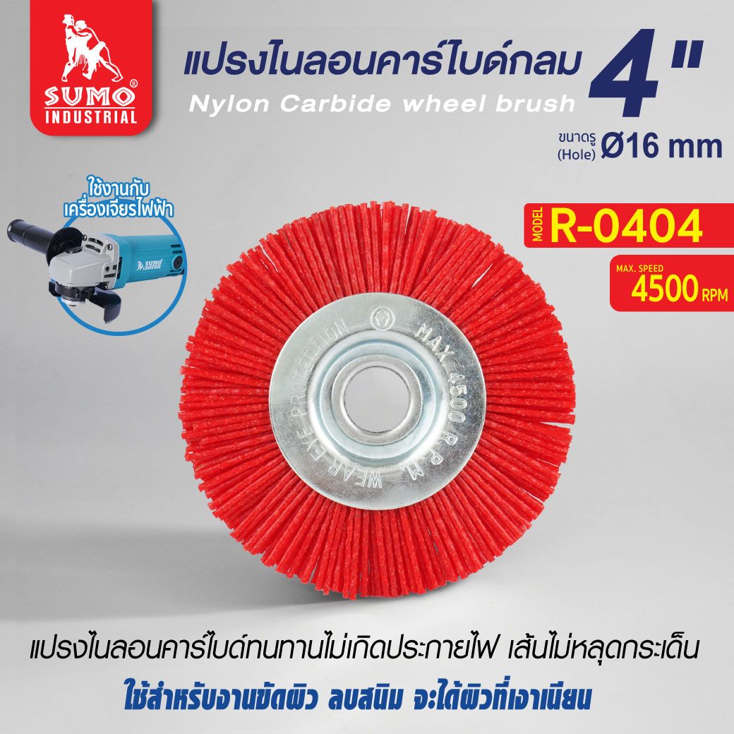 แปรงไนลอน กลม 4"x16mm SUMO
