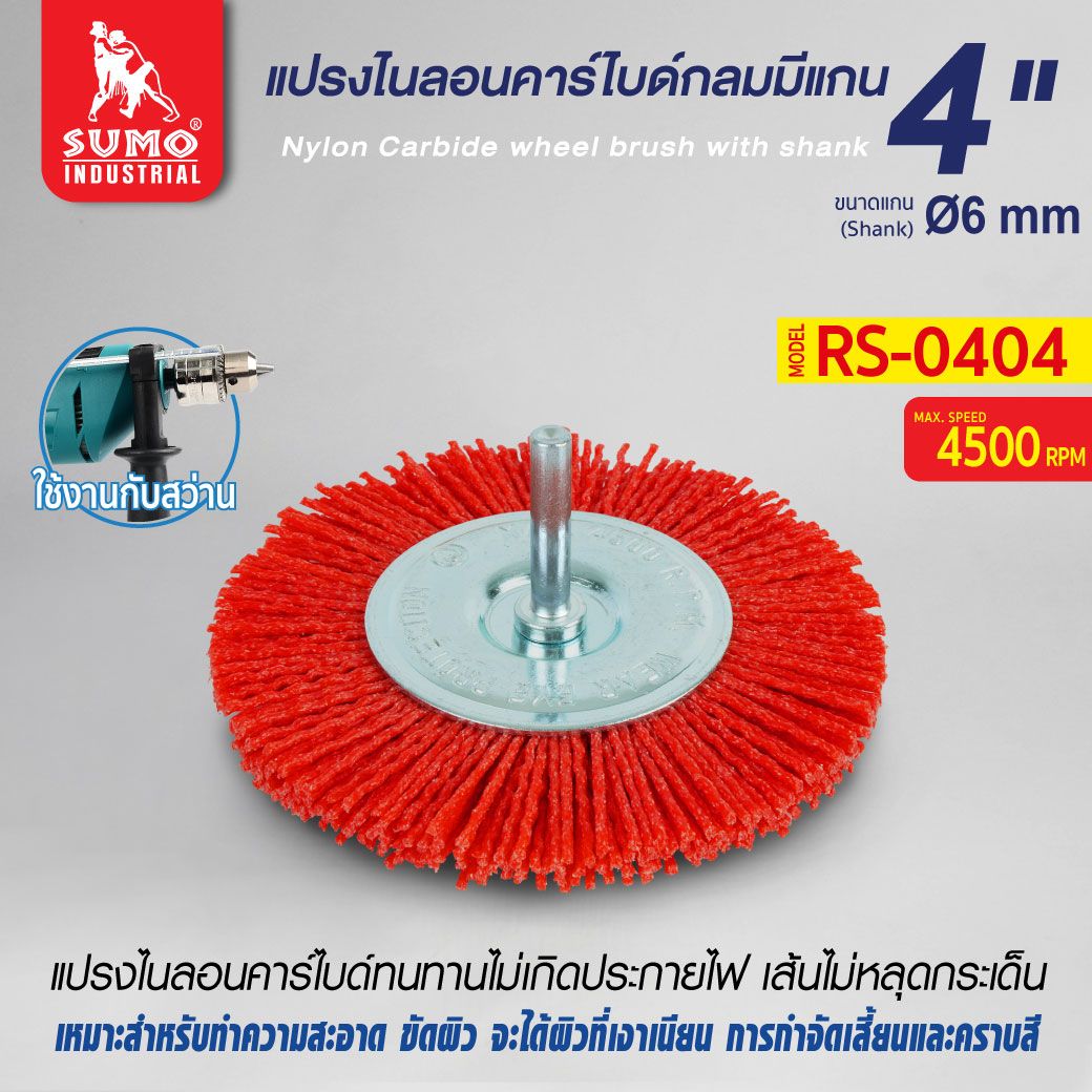 แปรงไนลอน กลมมีแกน 4"x6mm SUMO