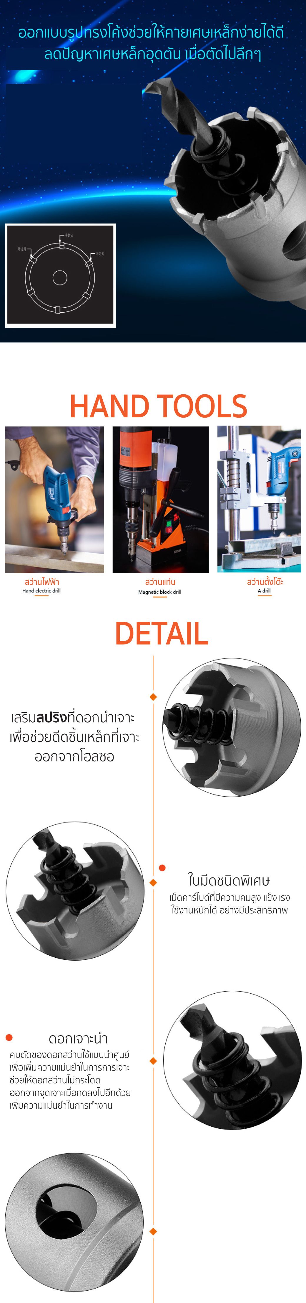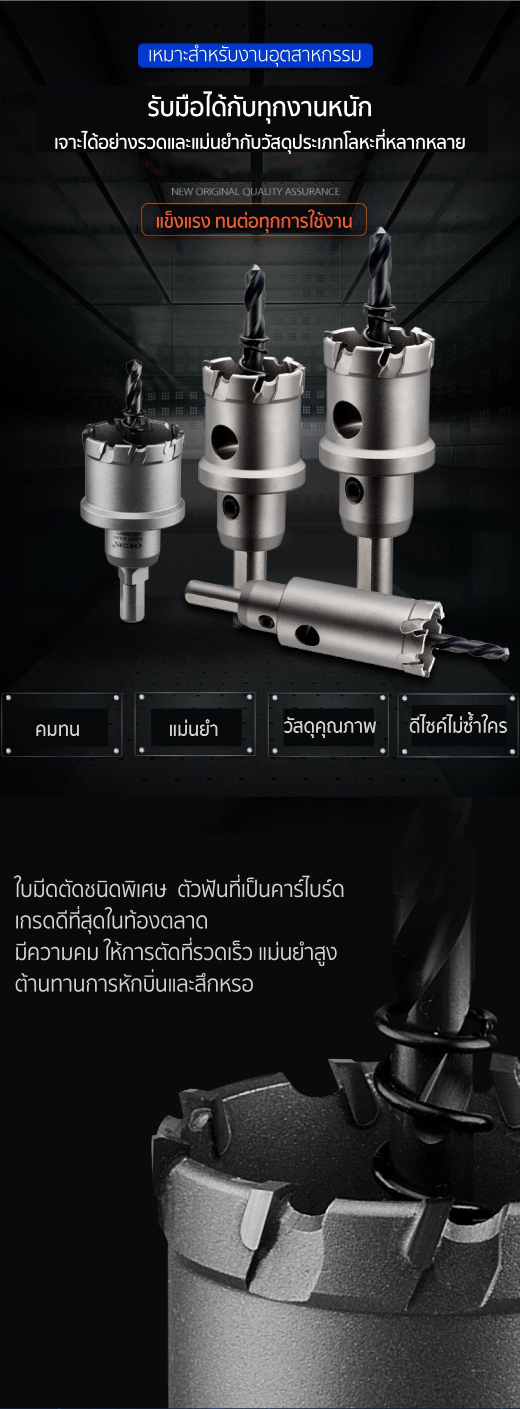 - เหมาะสำหรับเจาะเหล็ก เหล็กหล่อให้เป็นรู แข็งแรง คมทน ทนต่อทุกการใช้งาน