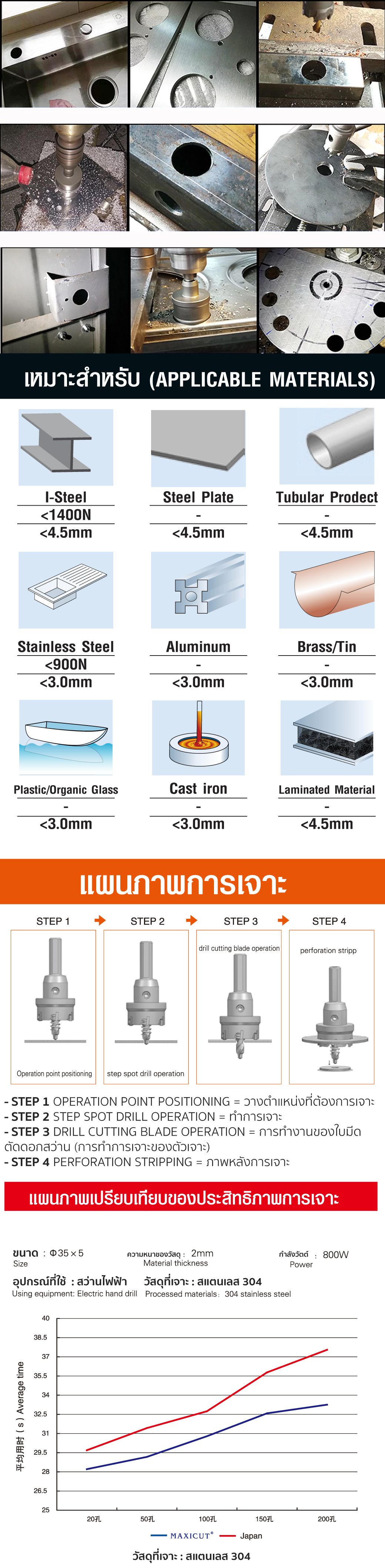 - ใช้สำหรับงานอุตสาหกรรม ใช้กับเหล็กท่อ เหล็กแผ่น สแตนเลส อลูมิเนียม พลาสติก ฯลฯ