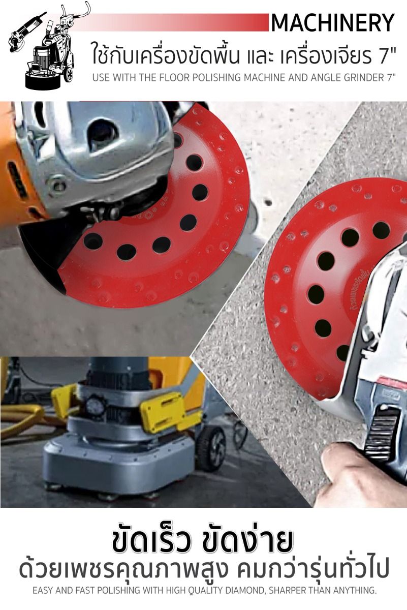 - ใช้กับเครื่องขัดพื้นและเครื่องเจียร 7"
