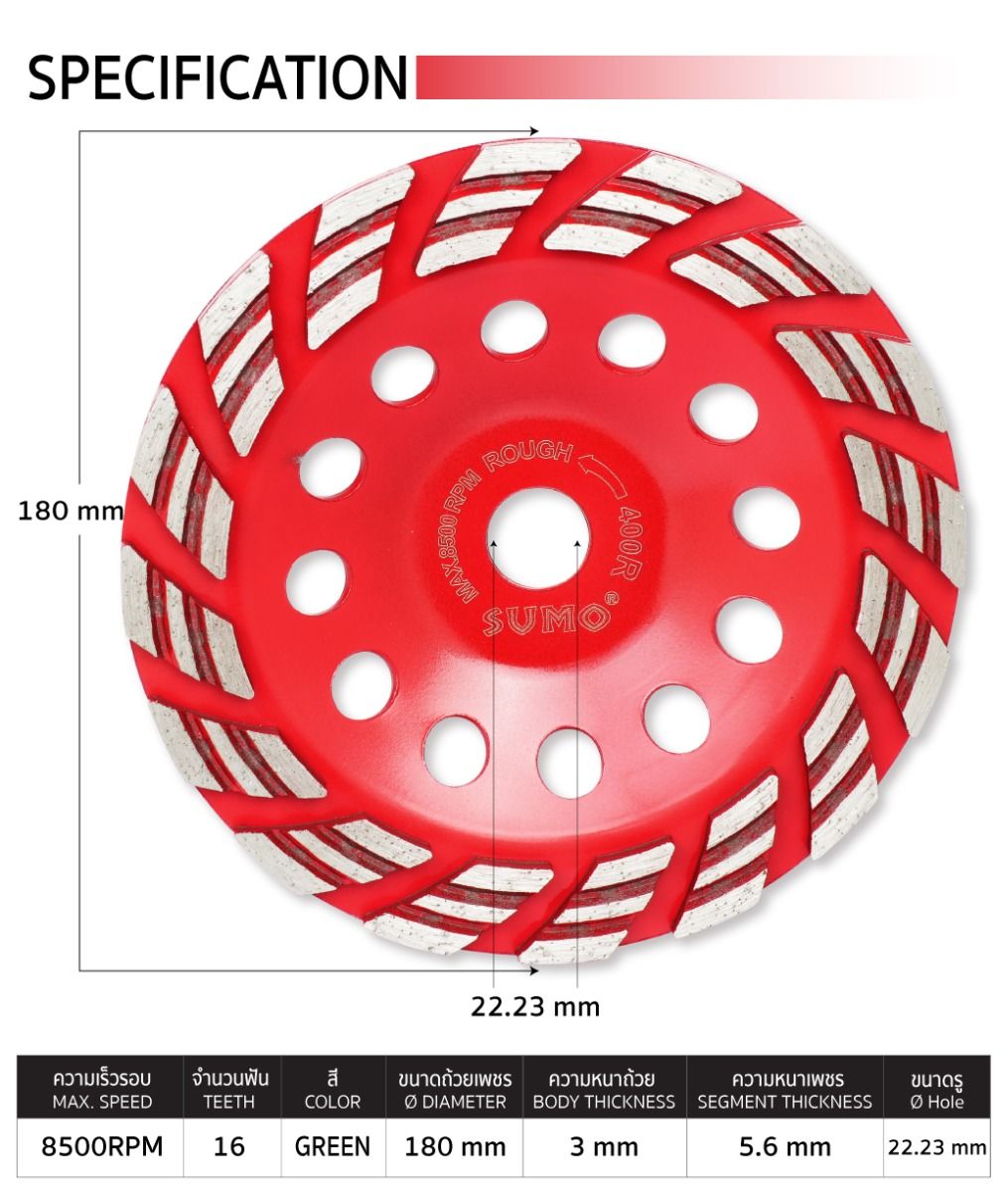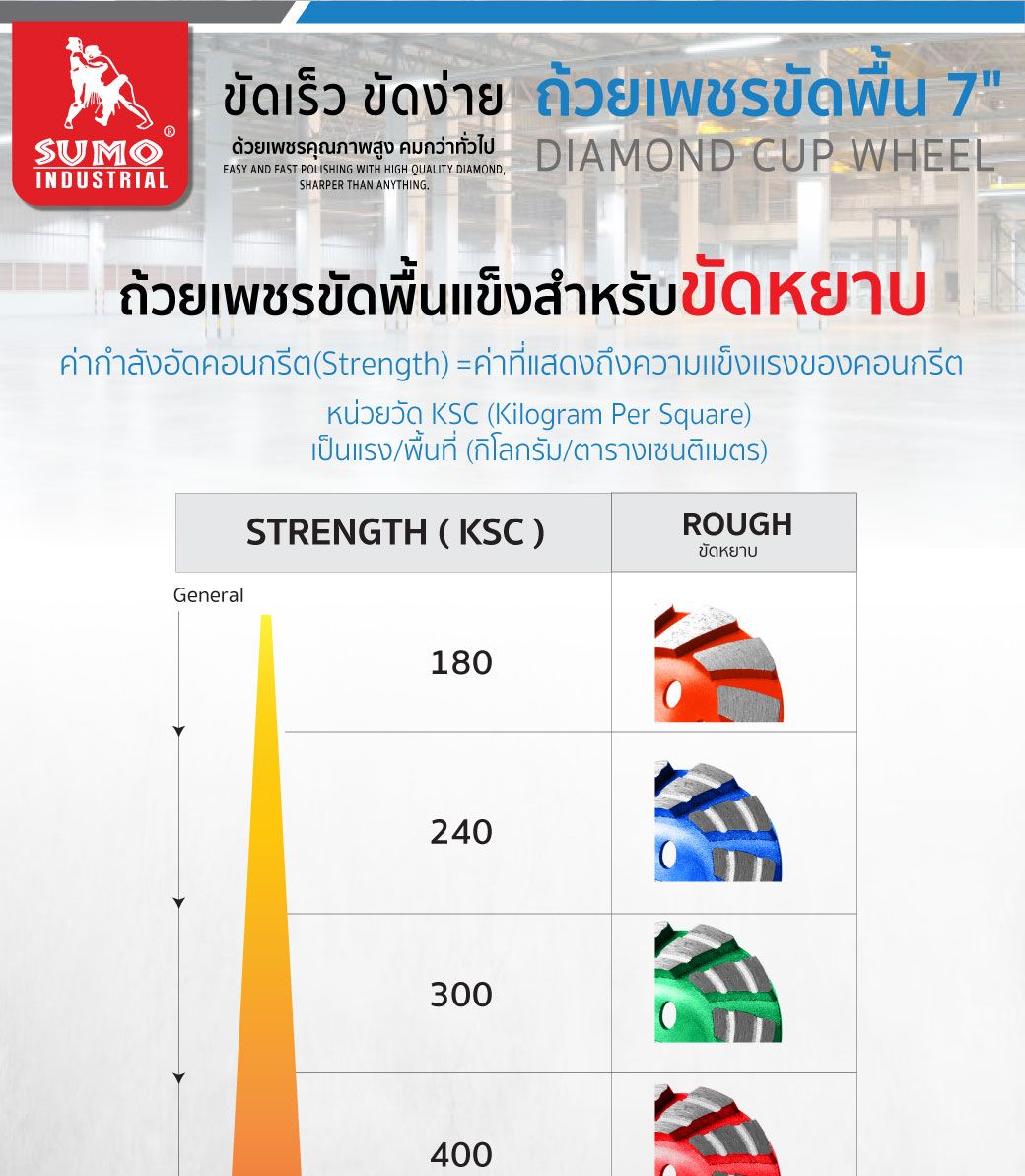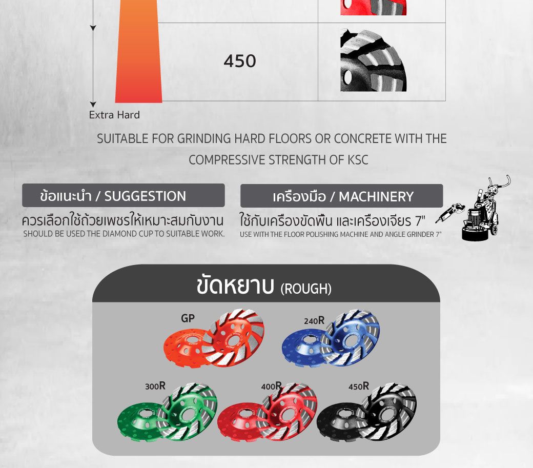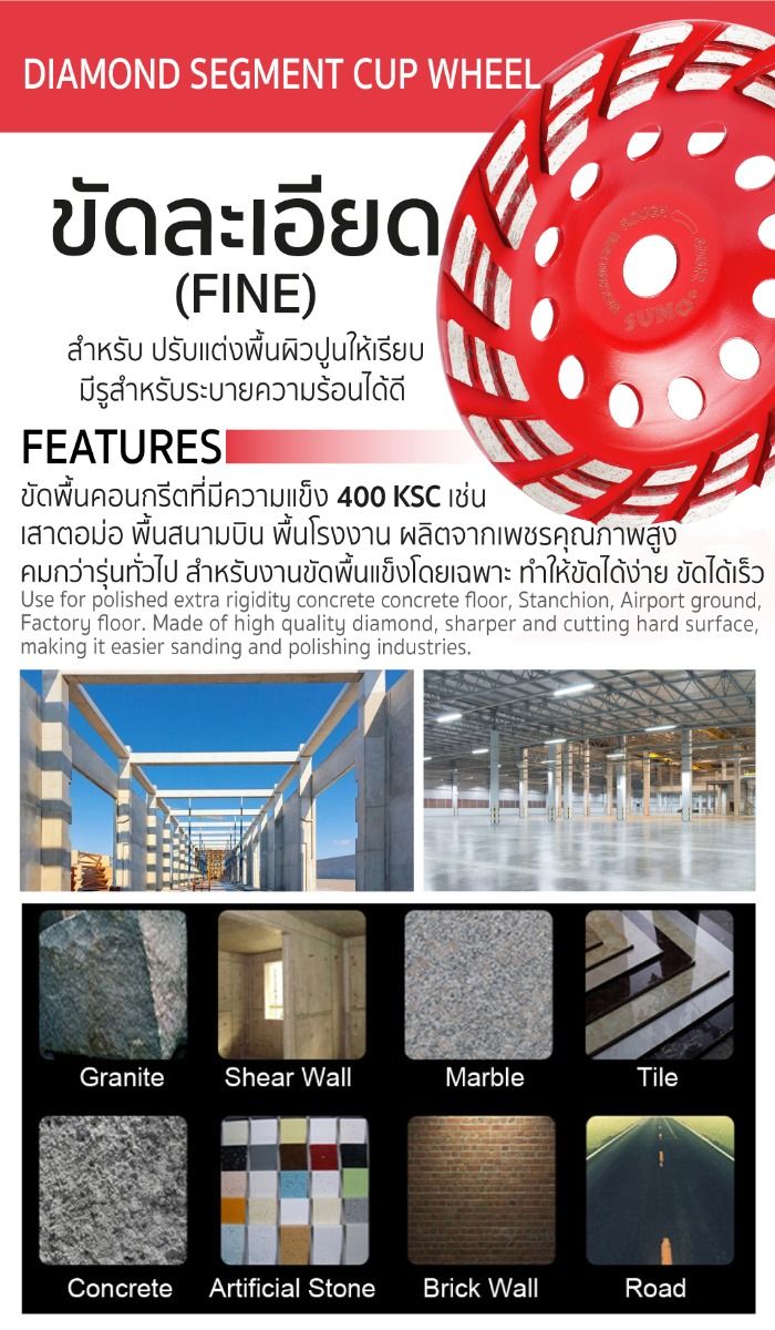 - ผลิตจากเพชรคุณภาพสูง คมกว่าทั่วไป สำหรับงานขัดพื้นแข็งโดยเฉพาะทำให้ขัดได้ง่าย ขัดได้เร็ว