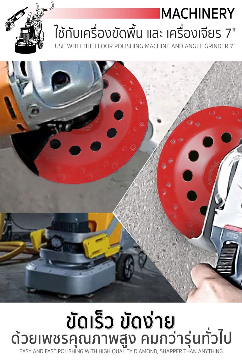 - ใช้กับเครื่องขัดพื้นและเครื่องเจียร 7"