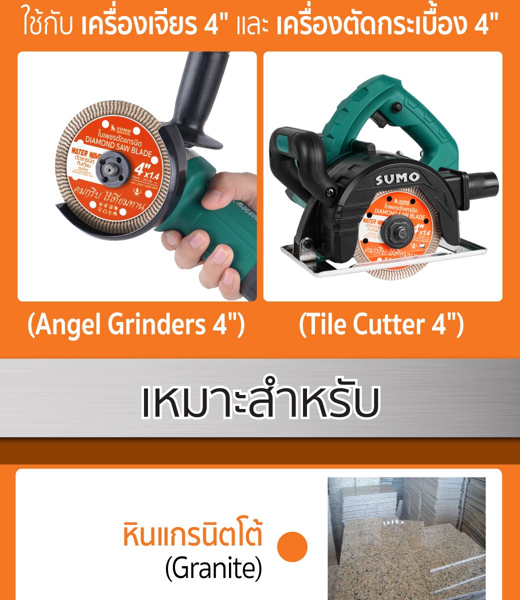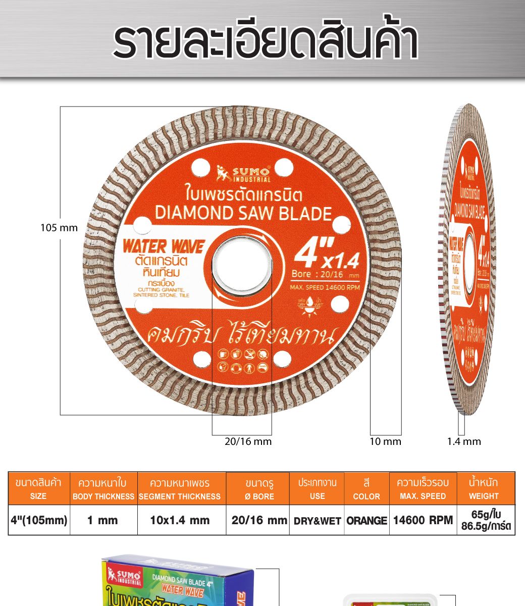 ใบเพชรตัดแกรนิต Water Wave 4"x1.4 SUMO