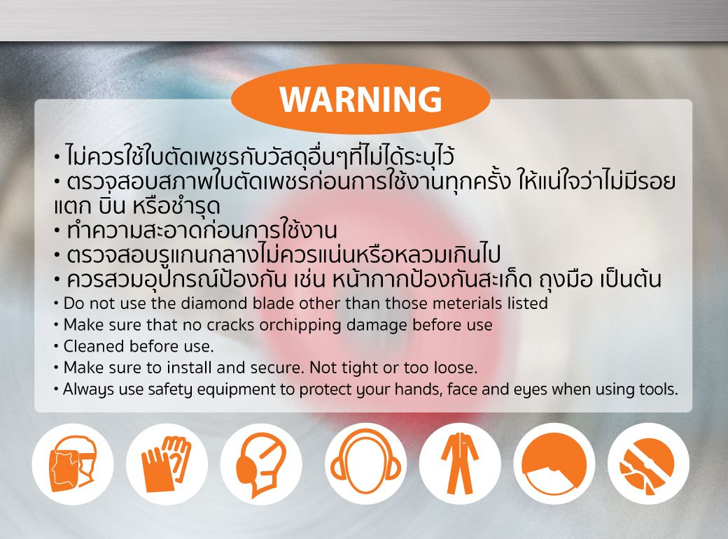 - ไม่ควรใช้ใบตัดเพชรกับวัสดุอื่นๆ ที่ไม่ได้ระบุไว้