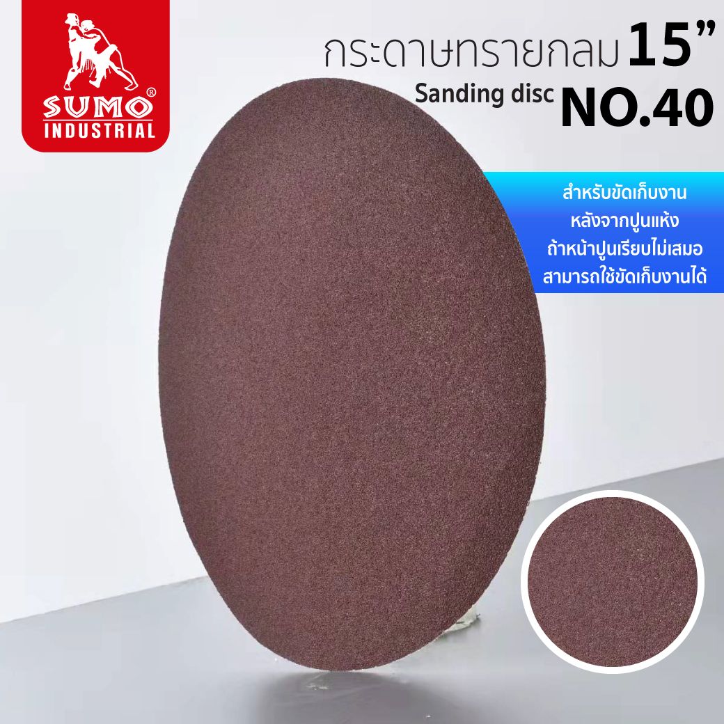 - กระดาษทรายกลม 15" ใช้กับเครื่องขัดหน้าปูนฉาบ 15" หรือ เครื่องปั่นหน้าปูน 15" ทุกยี่ห้อที่แป้นรองมีตีนตุ๊กแก