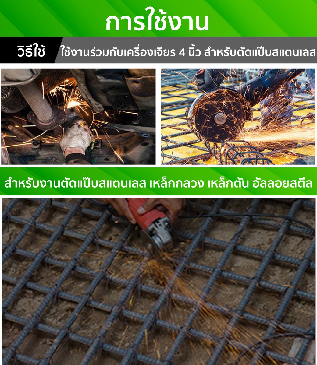 - ใบตัด ใช้งานร่วมกับเครื่องเจียร 4 นิ้ว