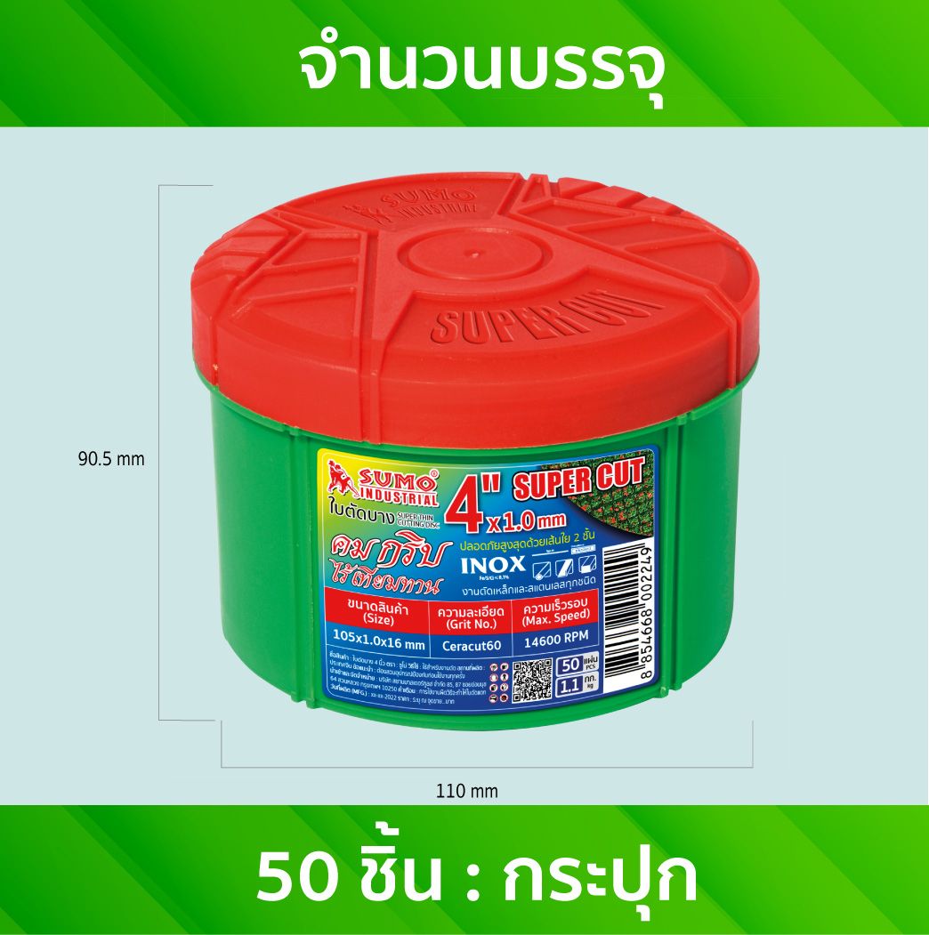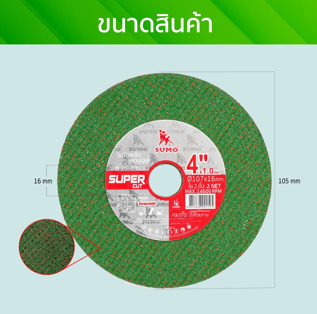 ใบตัด 4"x1.0x16mm ใย 2 ชั้น SUPER CUT SUMO