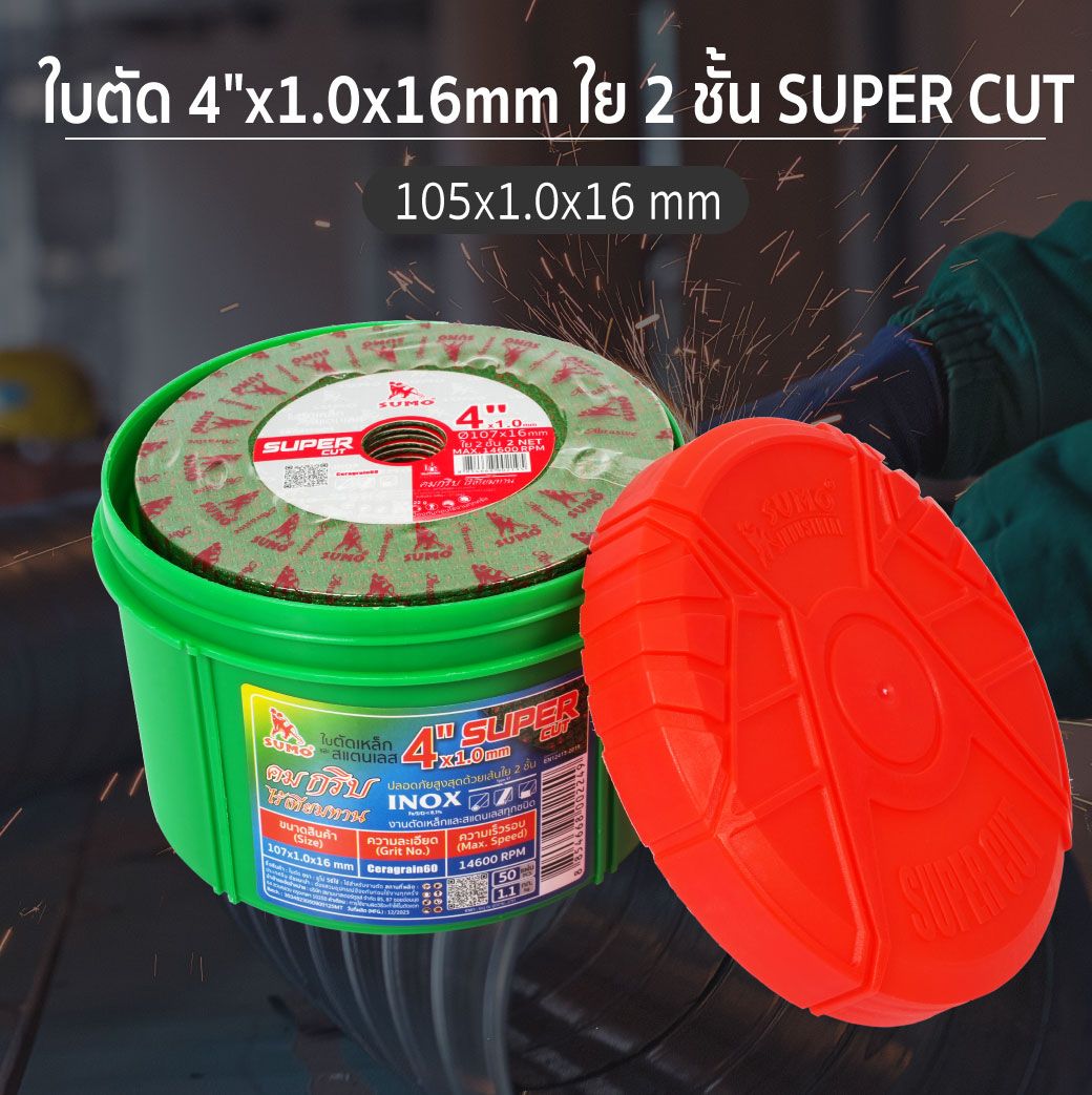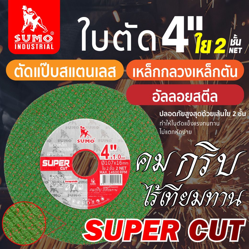 ใบตัด 4"x1.0x16 ใย 2 ชั้น SUMO Super Cut