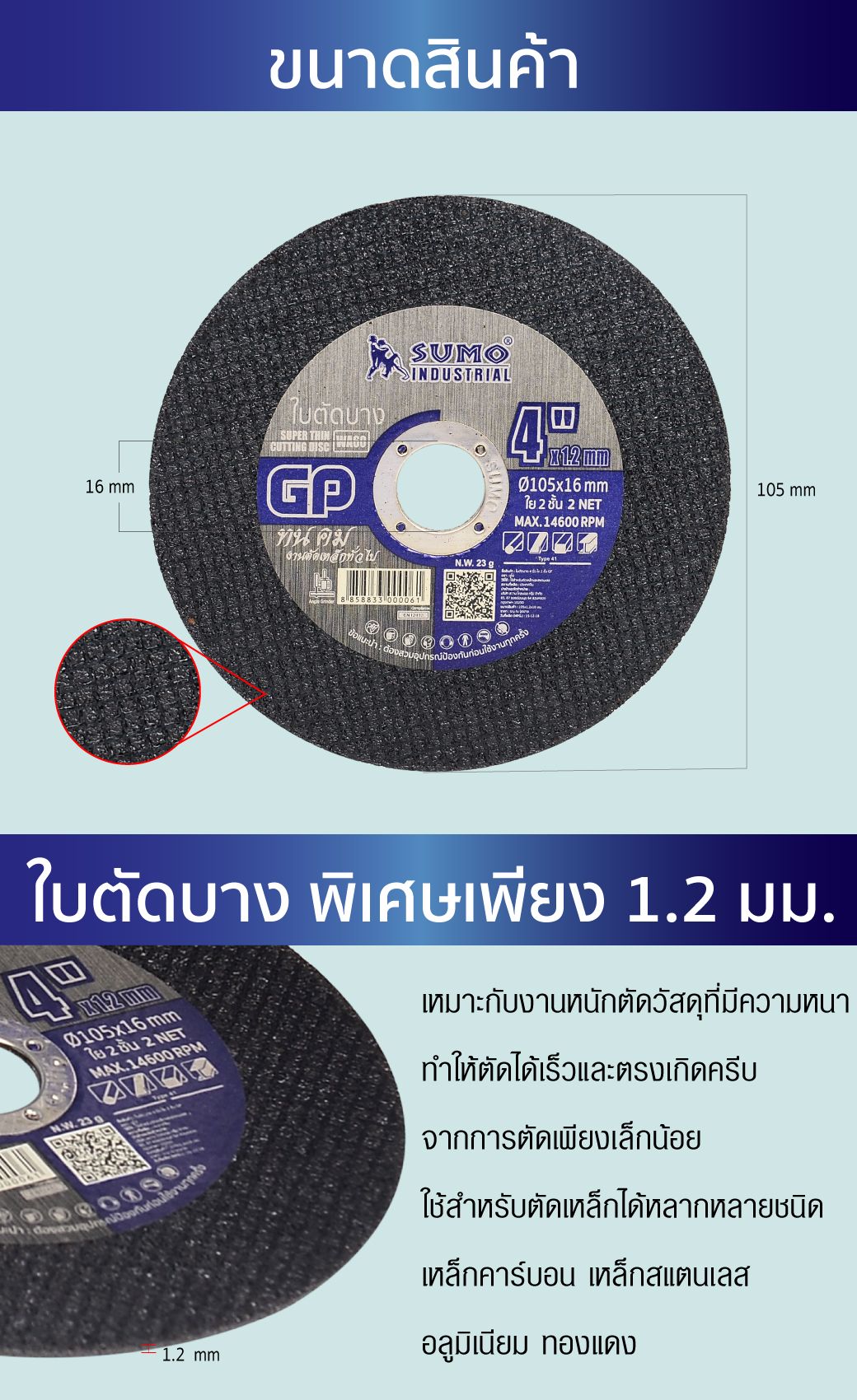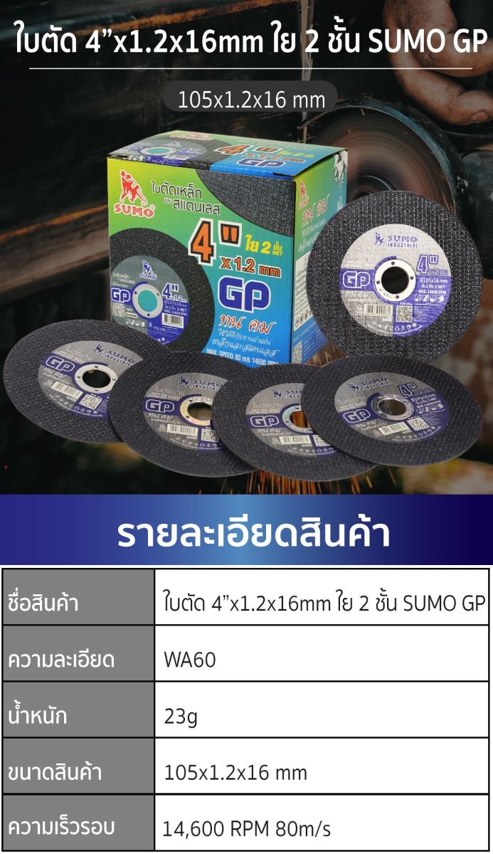 ใบตัด 4"x1.2x16mm ใย 2 ชั้น GP SUMO