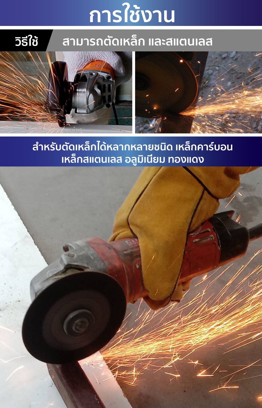 - ใบตัด สามารถตัดวัสดุที่มีความหนาได้ เช่น เหล็กหนา เหล็กตัน และเหล็กทั่วไป