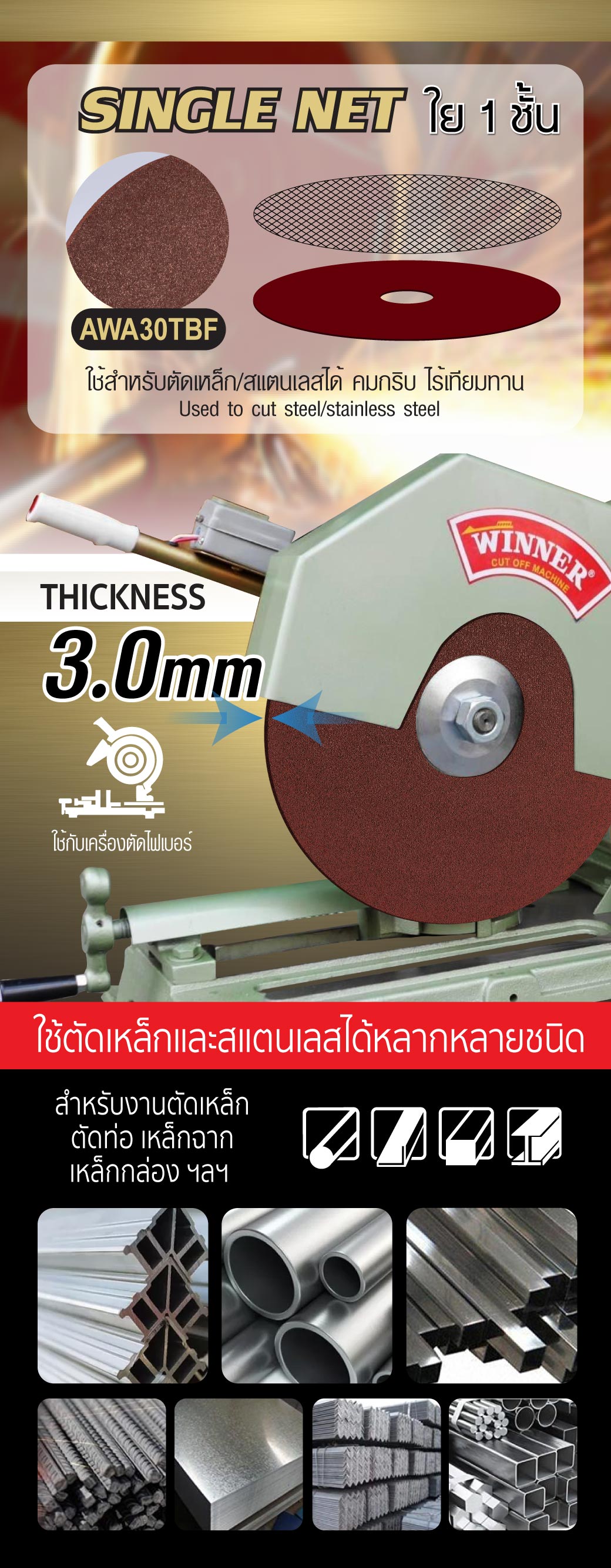 - ห้าม นำใบเจียร/ตัดไปใช้เจียรหรือตัด วัสดุที่ไม่ได้ถูกกำหนมไว้