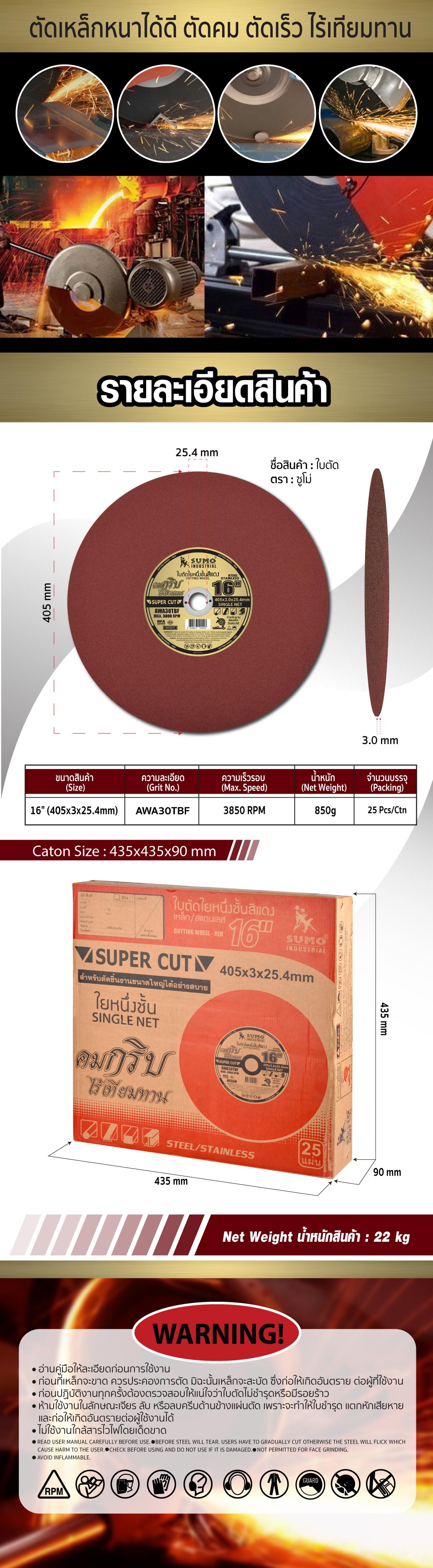 ใบตัด 16" (405x3x25.4mm) SUMO สีแดง