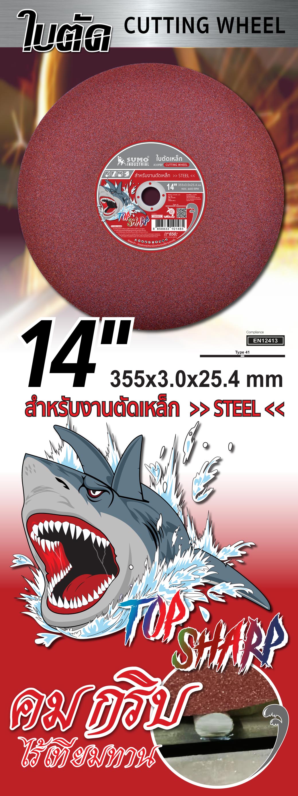 ใบตัด 14”x3x25.4 SUMO สีแดง (TOP SHARP)