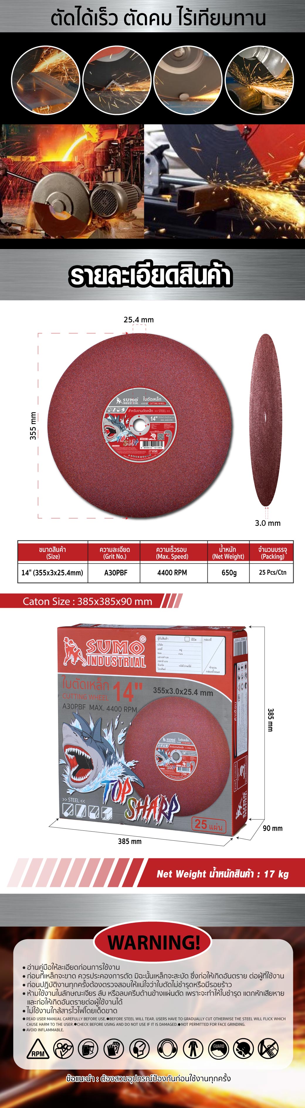 ใบตัดเหล็ก 14" (355x3x25.4mm) สีแดง SUMO (TOP SHARP)