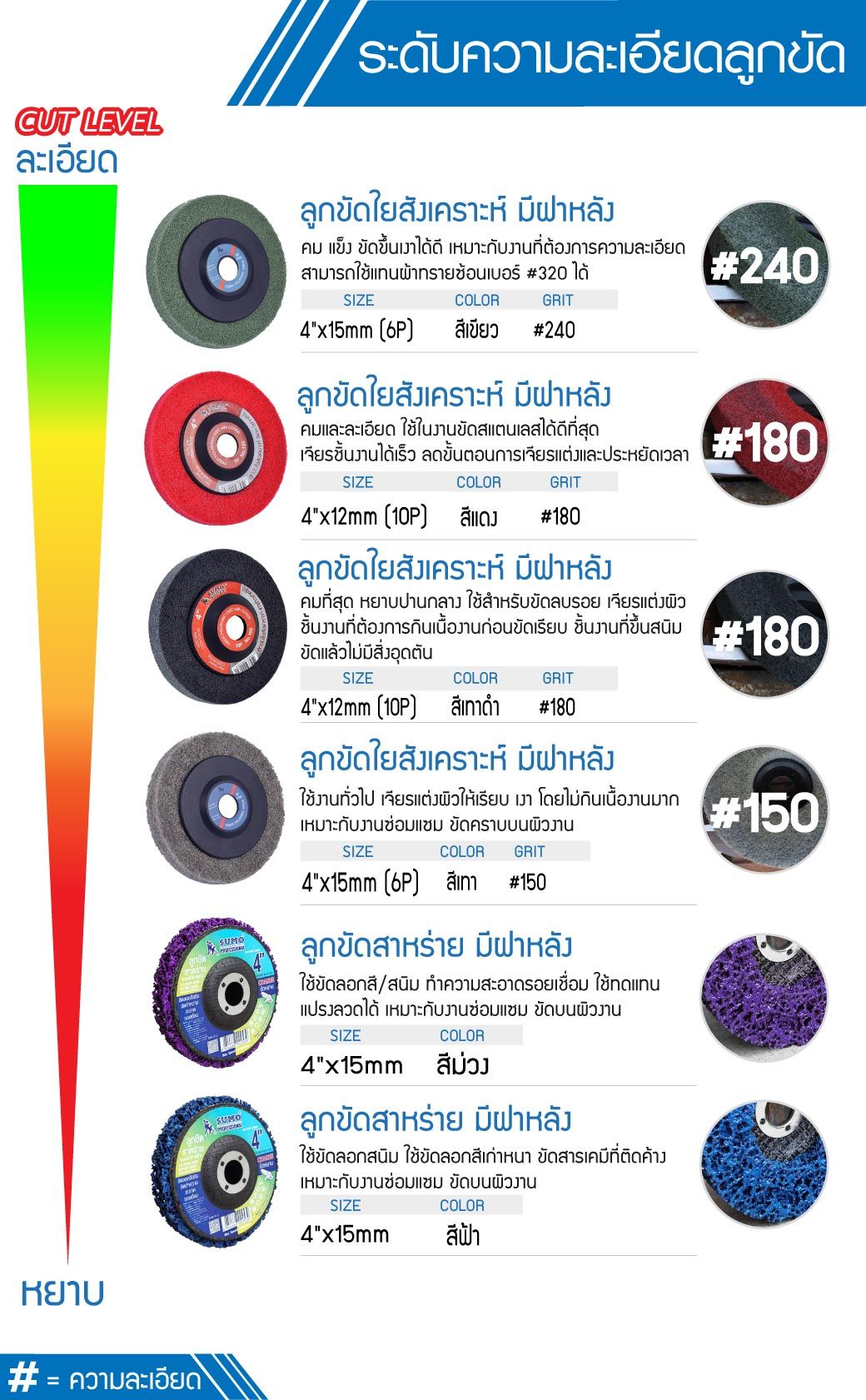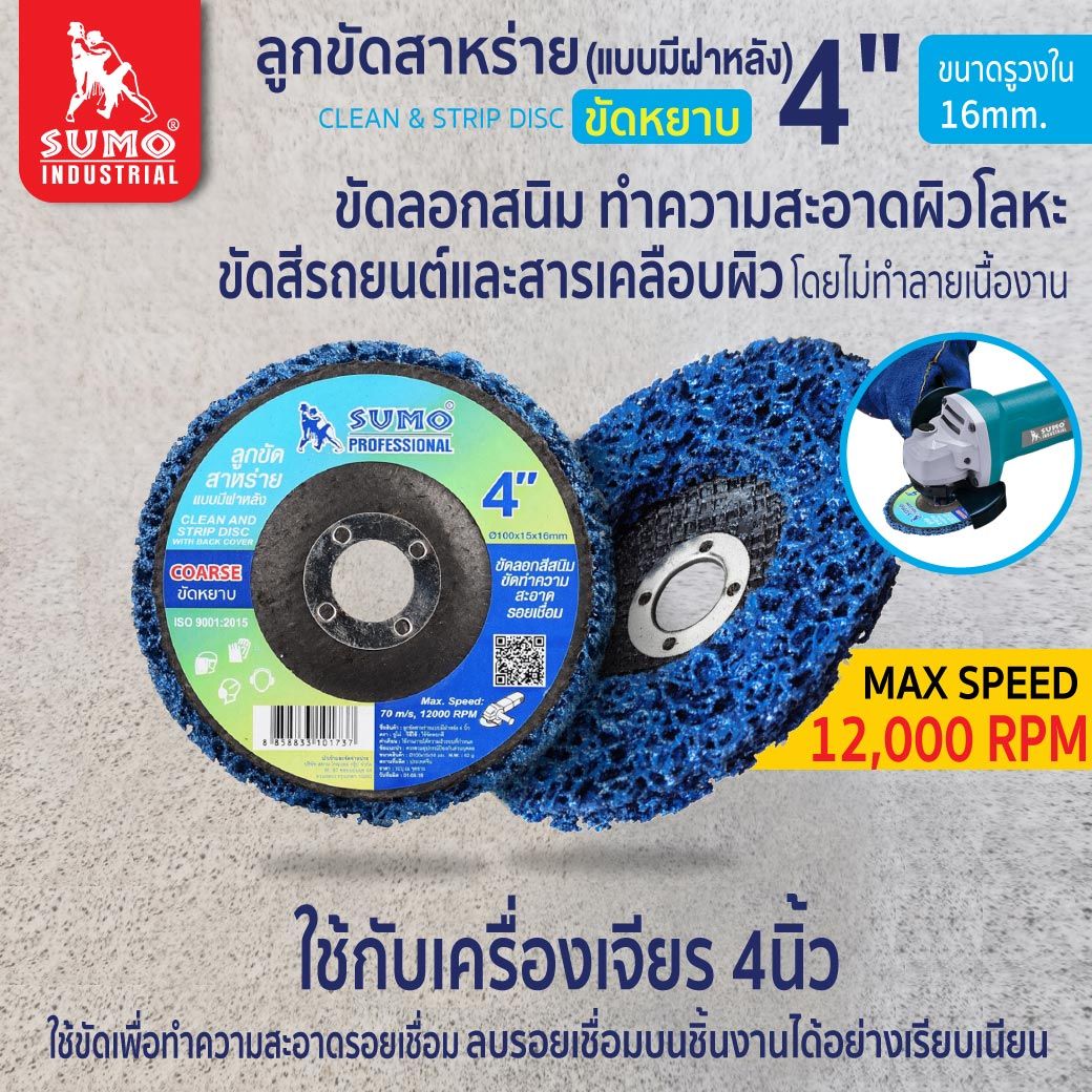 ลูกขัดสาหร่าย 4 นิ้ว ใช้ขัดลอกสนิม ทำความสะอาดผิวโลหะ โดยชิ้นงานที่ได้จะไม่เสียรูปทรง