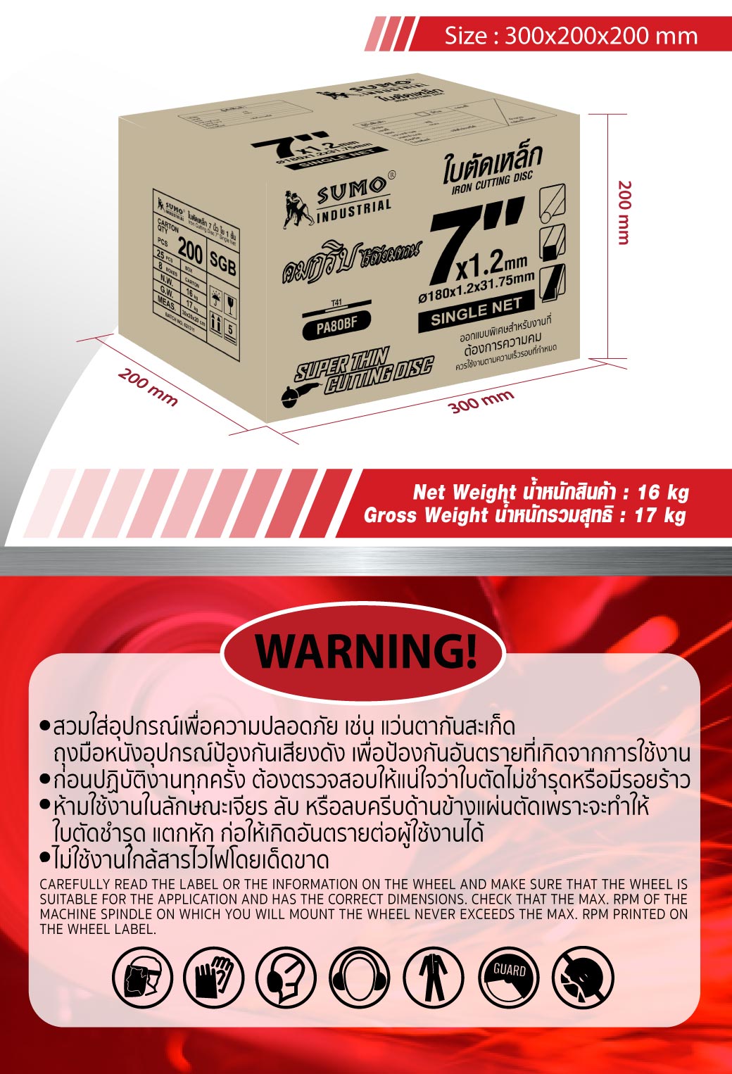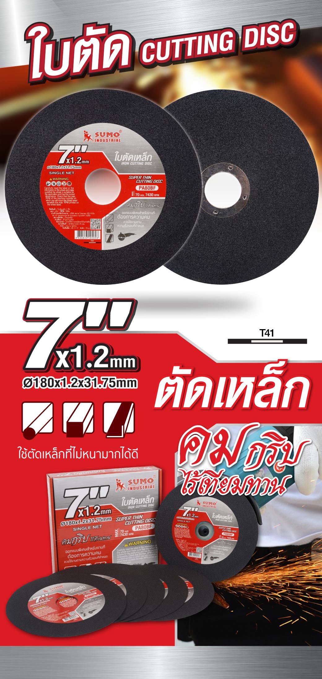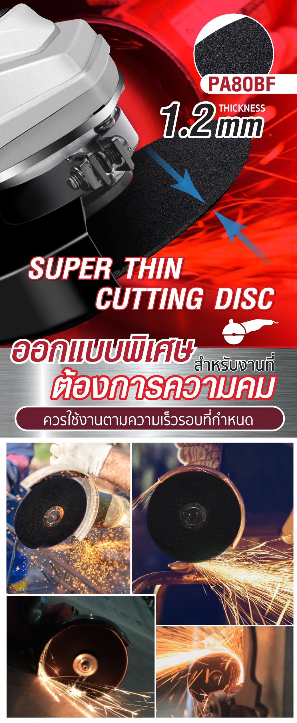- เหมาะสำหรับตัด ห้ามนำไปใช้งานเจียรโดยเด็ดขาด