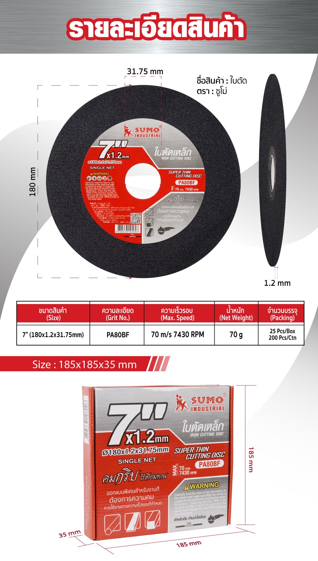 ใบตัด 7”x1.2x31.75 SUMO