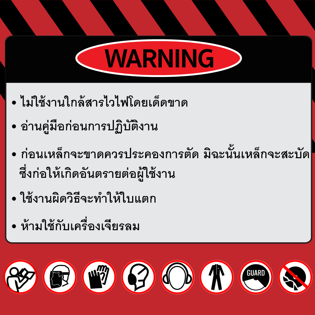 - ห้าม นำใบเจียร/ตัดไปใช้เจียรหรือตัด วัสดุที่ไม่ได้ถูกกำหนดไว้