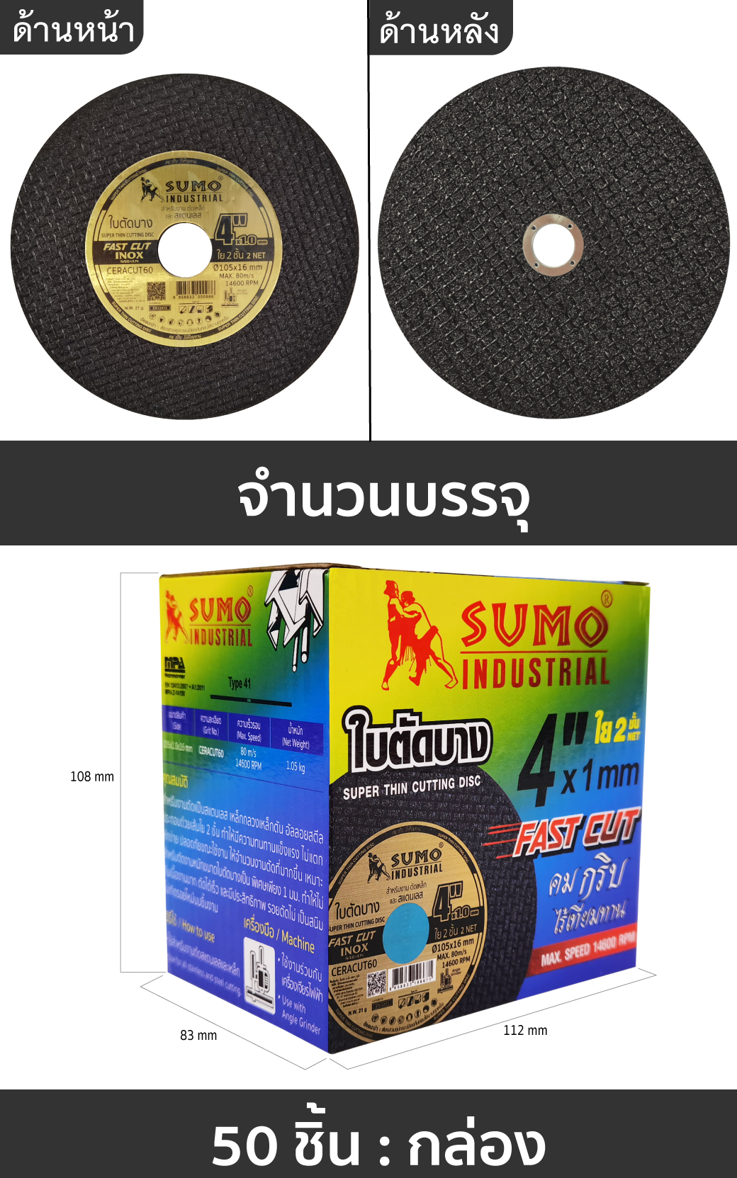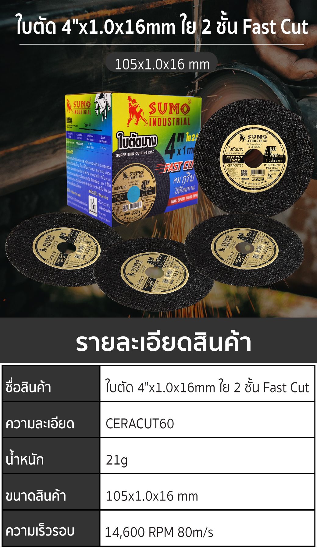 ใบตัด 4”x1.0x16 ใย 2 ชั้น SUMO Fast Cut