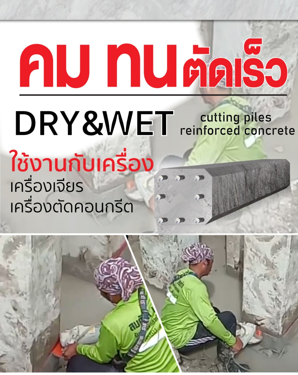 - ใช้ตัดวัสดุก่อสร้างเช่น เสาเข็ม คอนกรีตอัดแรงเสริมเหล็ก