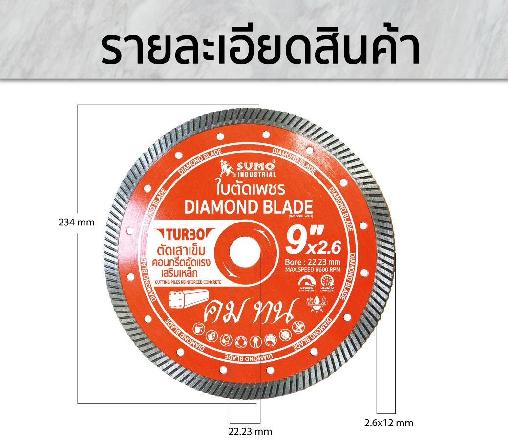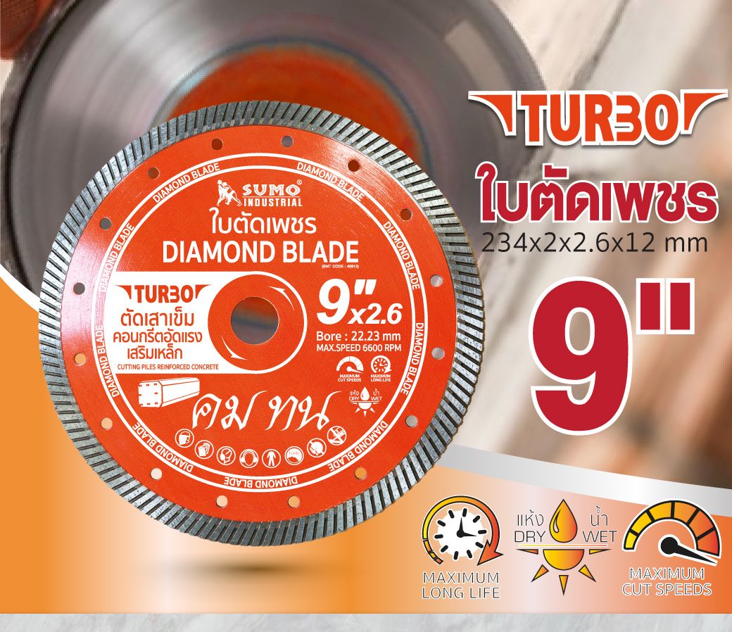 ใบตัดเพชร 9”x12mm SUMO (40912) Turbo
