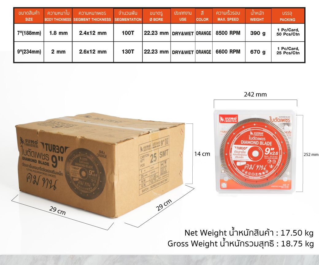 ขนาดใบเพชร (Diameter) | 9"(234mm) |
