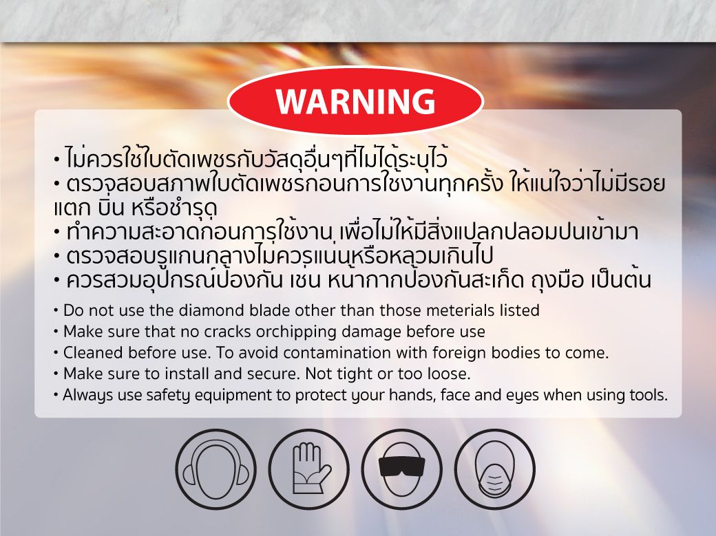 - ห้าม นำใบเจียร/ตัดไปใช้เจียรหรือตัด วัสดุที่ไม่ได้ถูกกำหนมไว้
