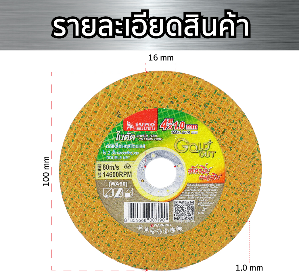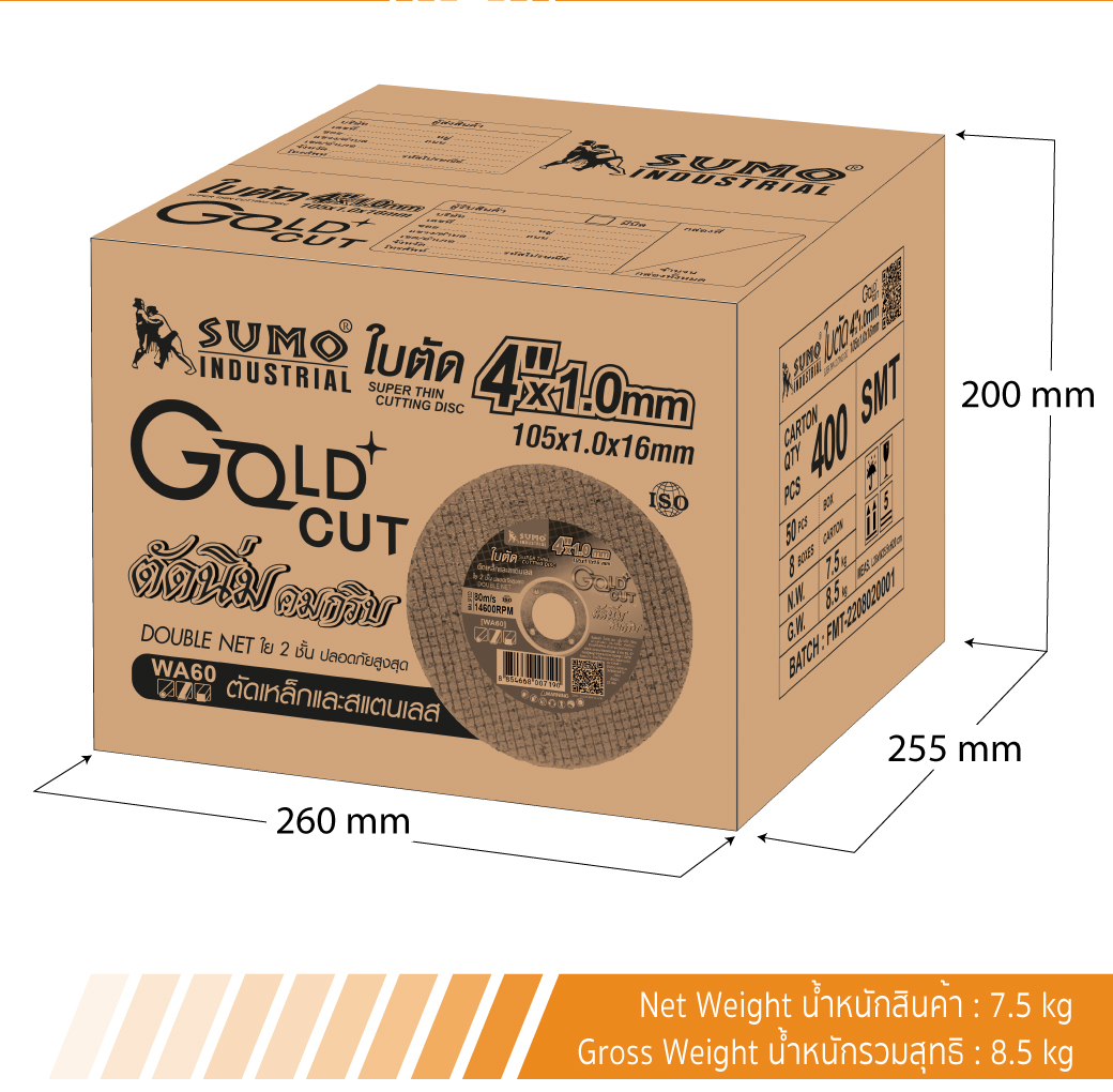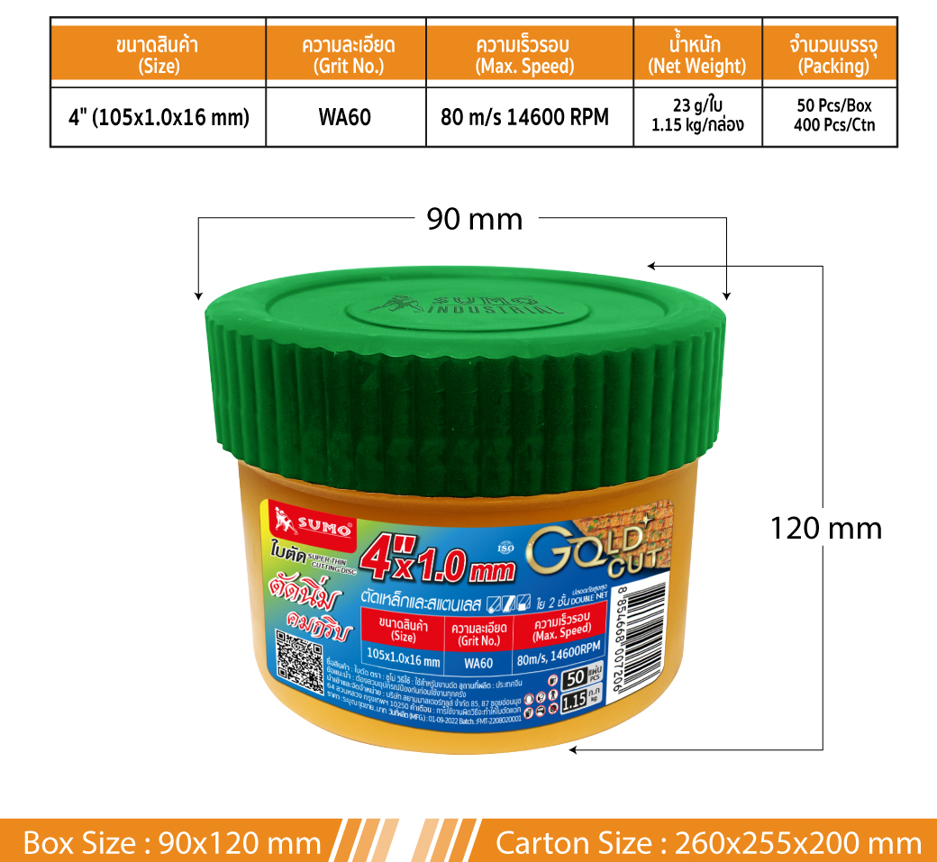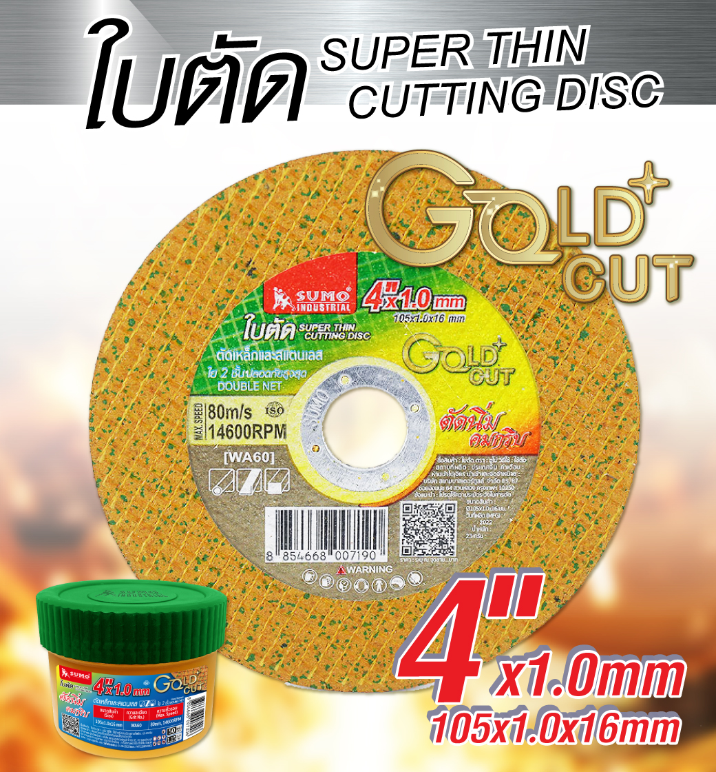 ใบตัด 4”x1.0x16 ใย 2 ชั้น SUMO GOLD CUT สีทอง