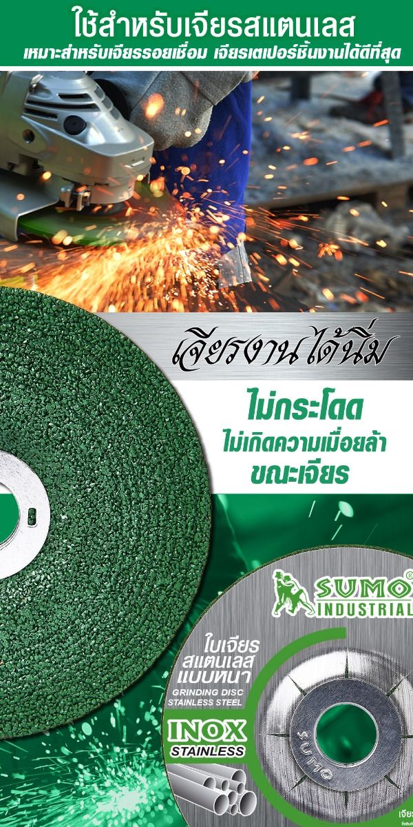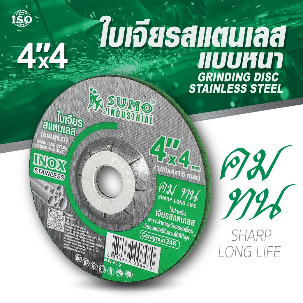 ใบเจียรสแตนเลส 4" (100x4mm) หนา SUMO สีเขียว