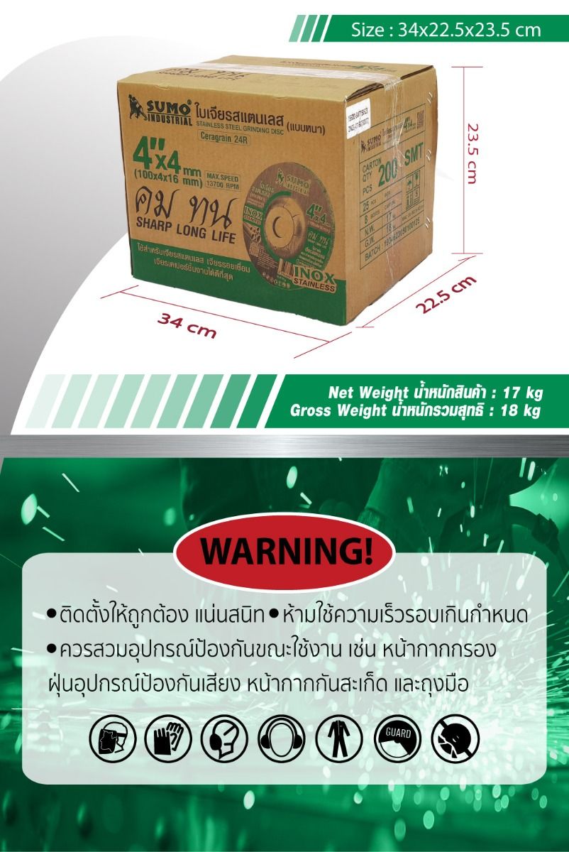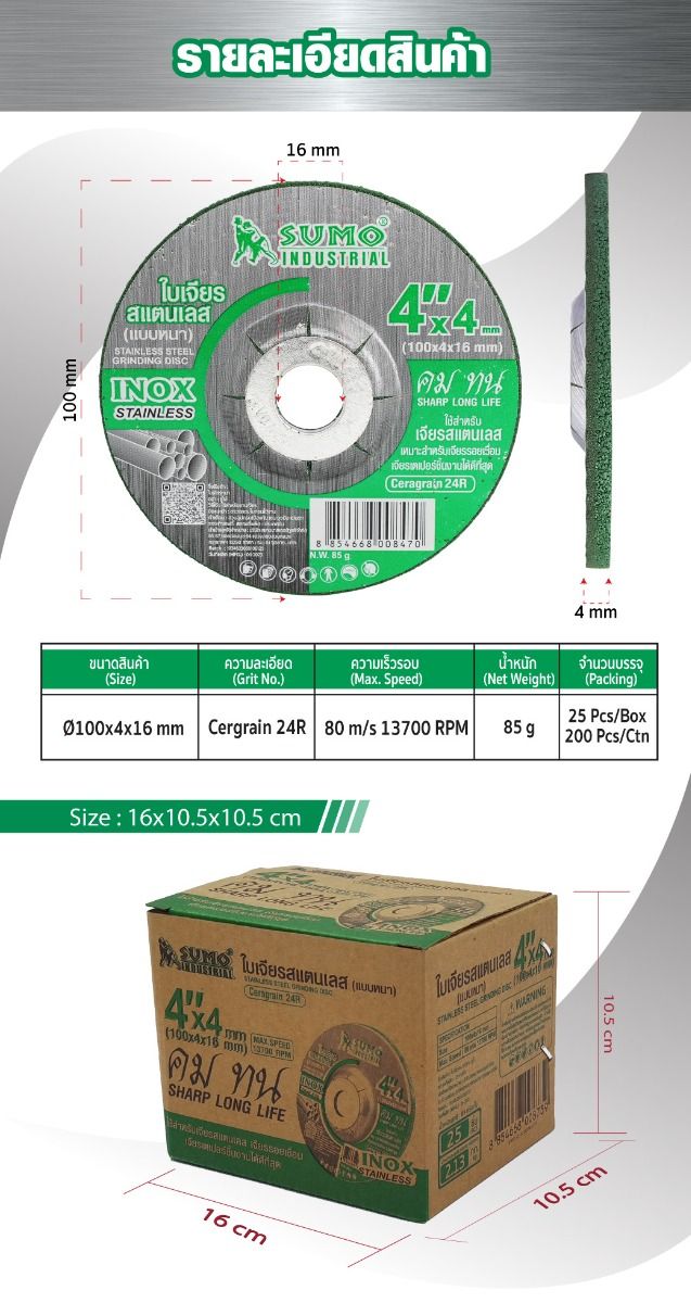 ความละเอียด : GRIT | 4" (100x4mm) หนา SUMO สีเขียว |