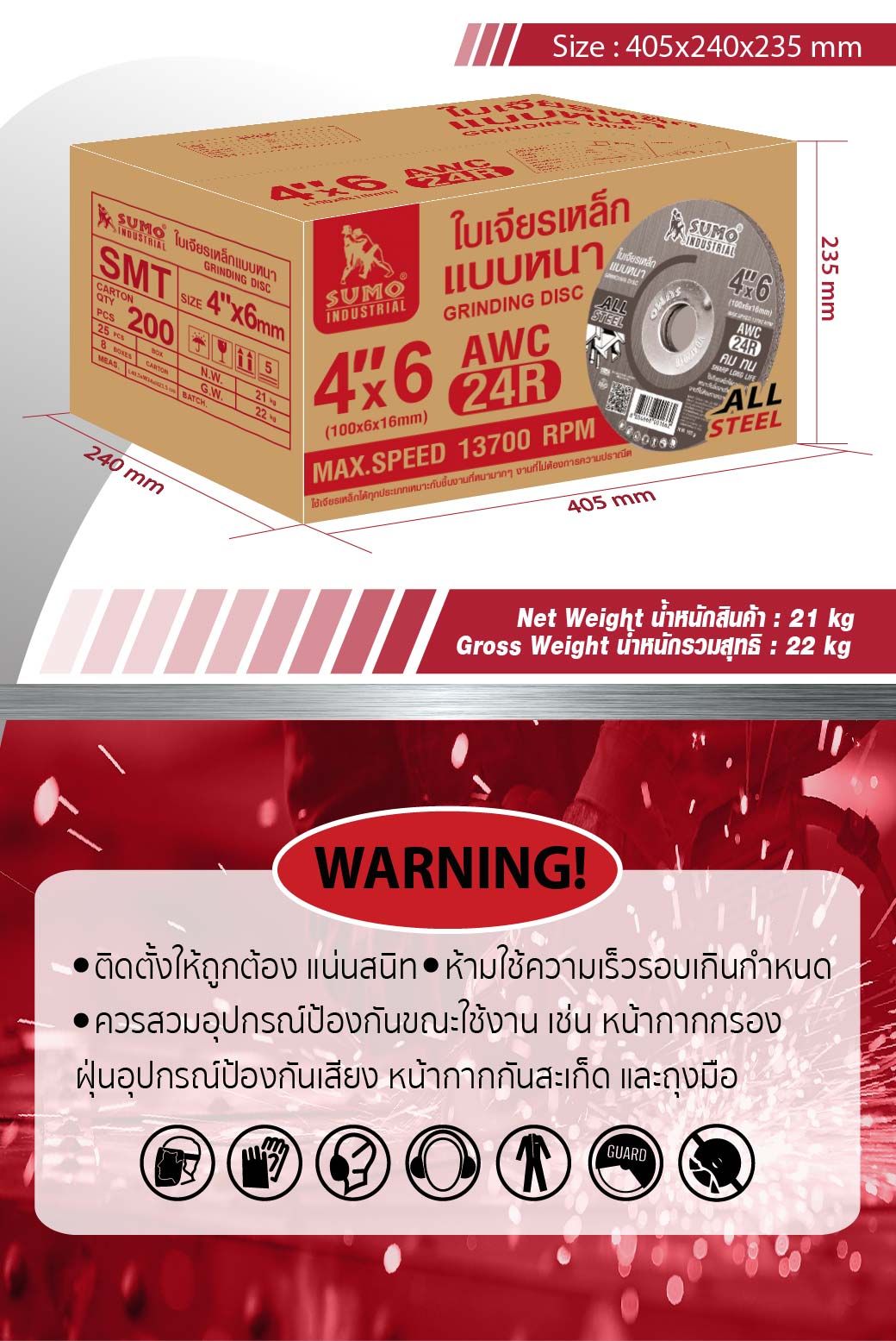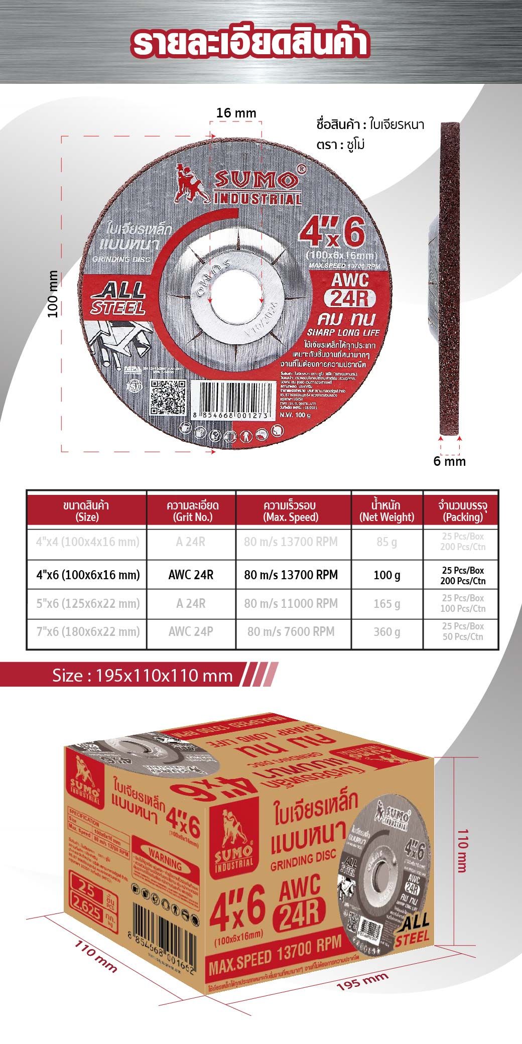 ใบเจียรเหล็ก 4"x6 (100x6mm) หนา A SUMO