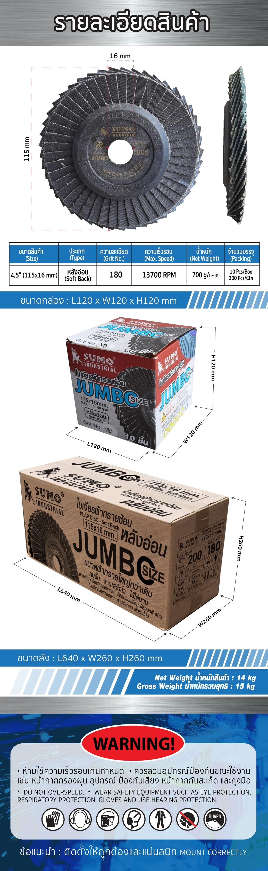 ใบเจียรผ้าทรายซ้อน 4.5" No.180 หลังอ่อน SUMO